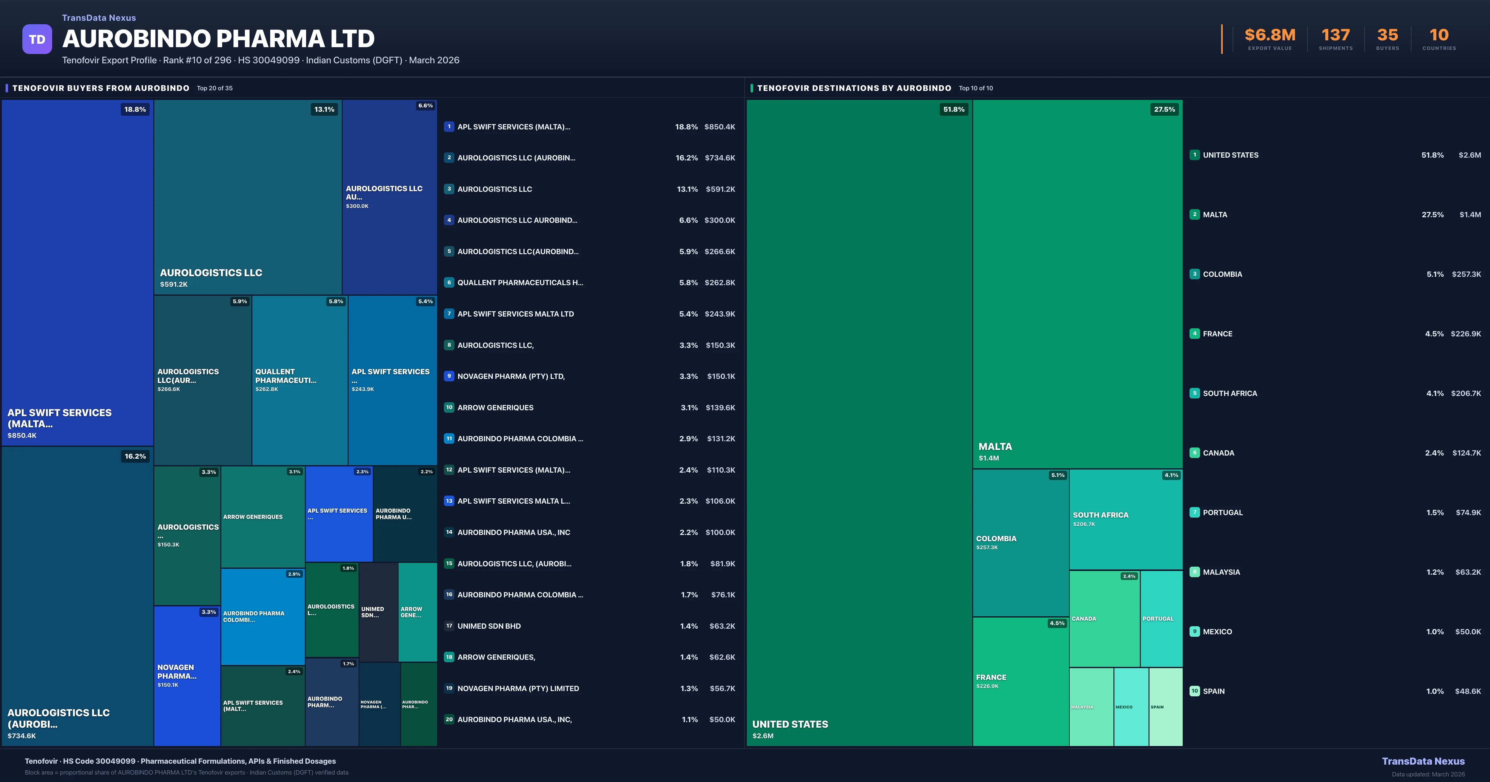 Aurobindo Pharma Ltd — Tenofovir Export Profile: Buyers & Destinations