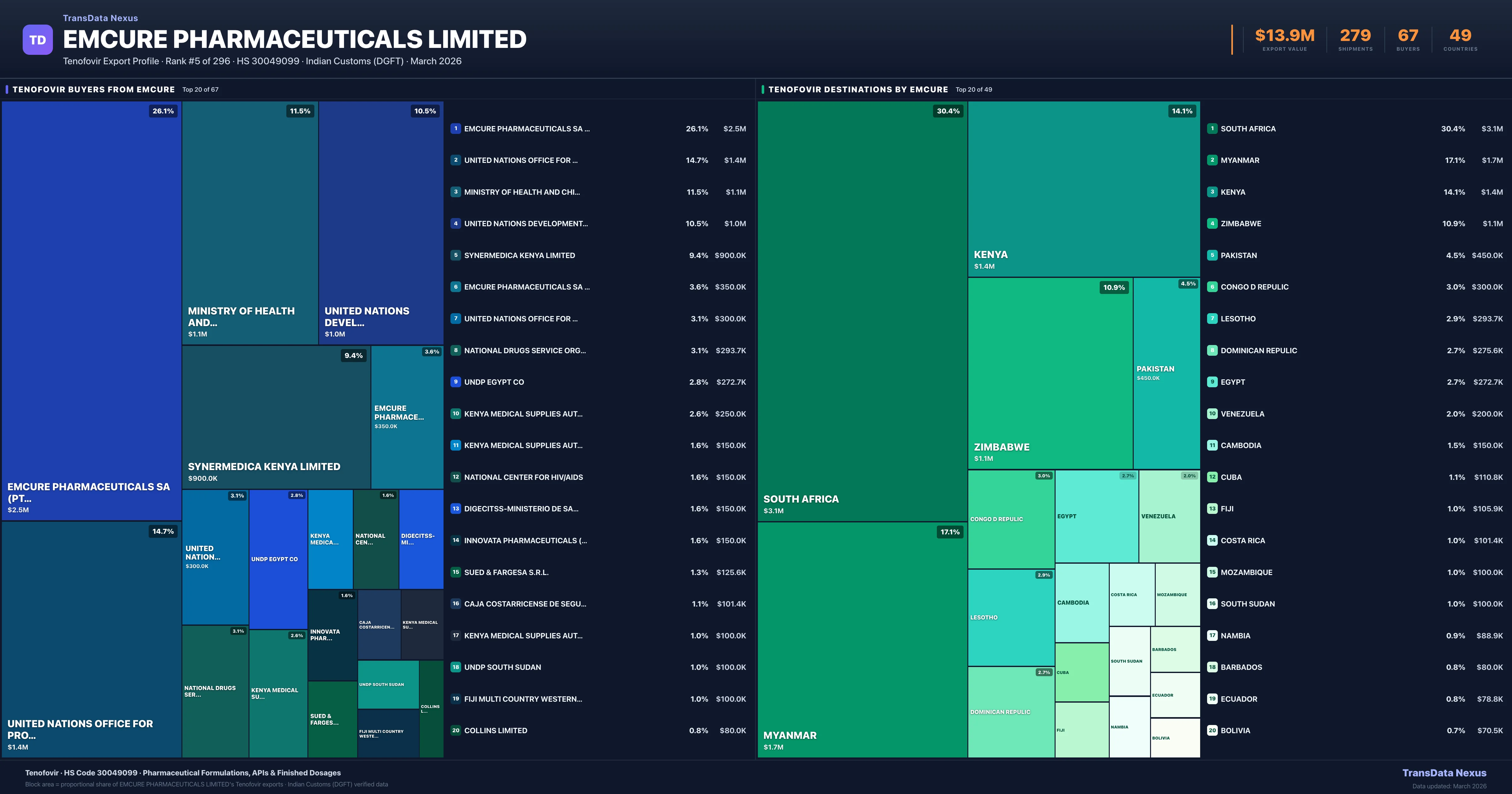 Emcure Pharmaceuticals Limited — Tenofovir Export Profile: Buyers & Destinations