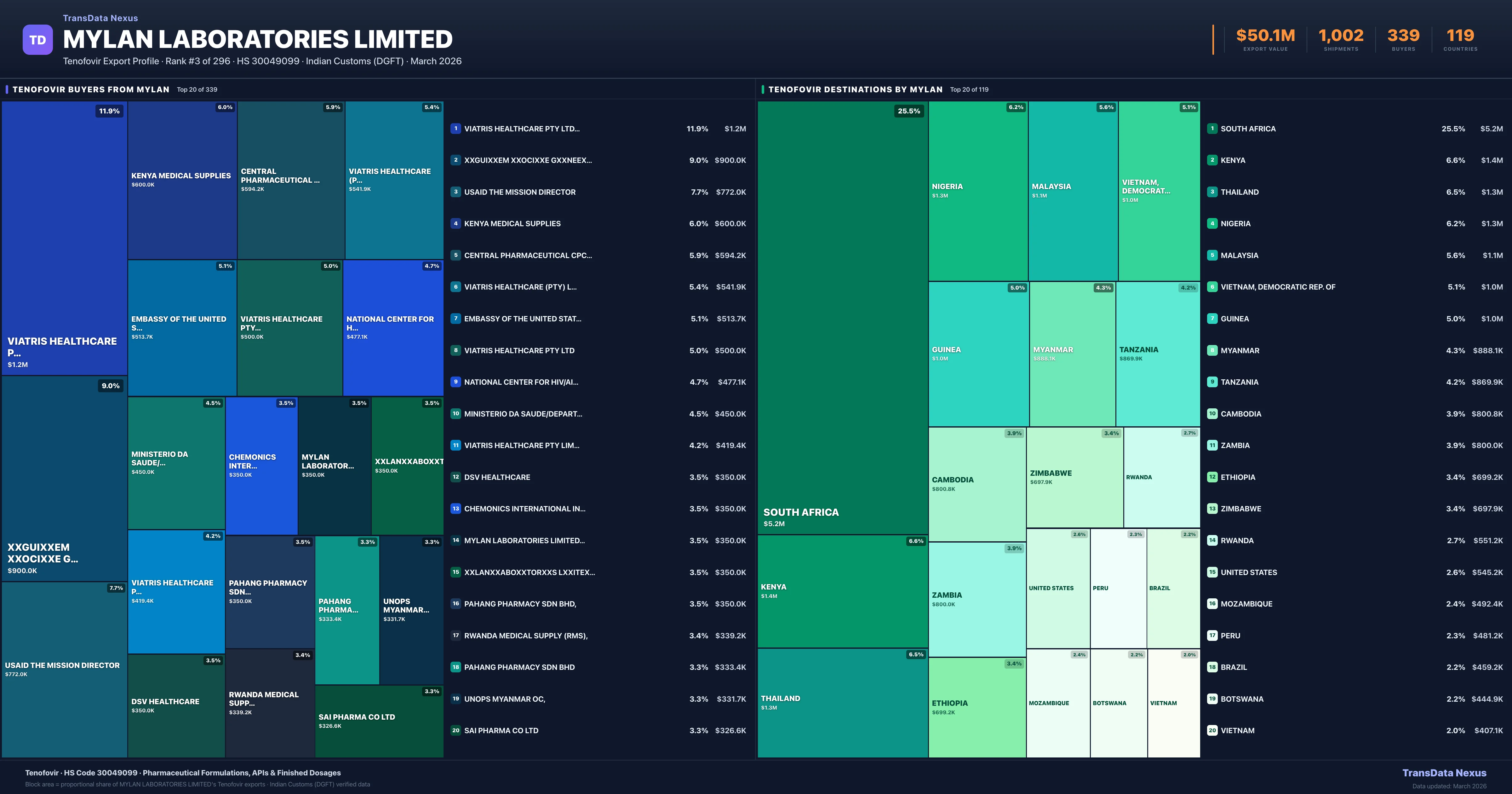 Mylan Laboratories Limited — Tenofovir Export Profile: Buyers & Destinations