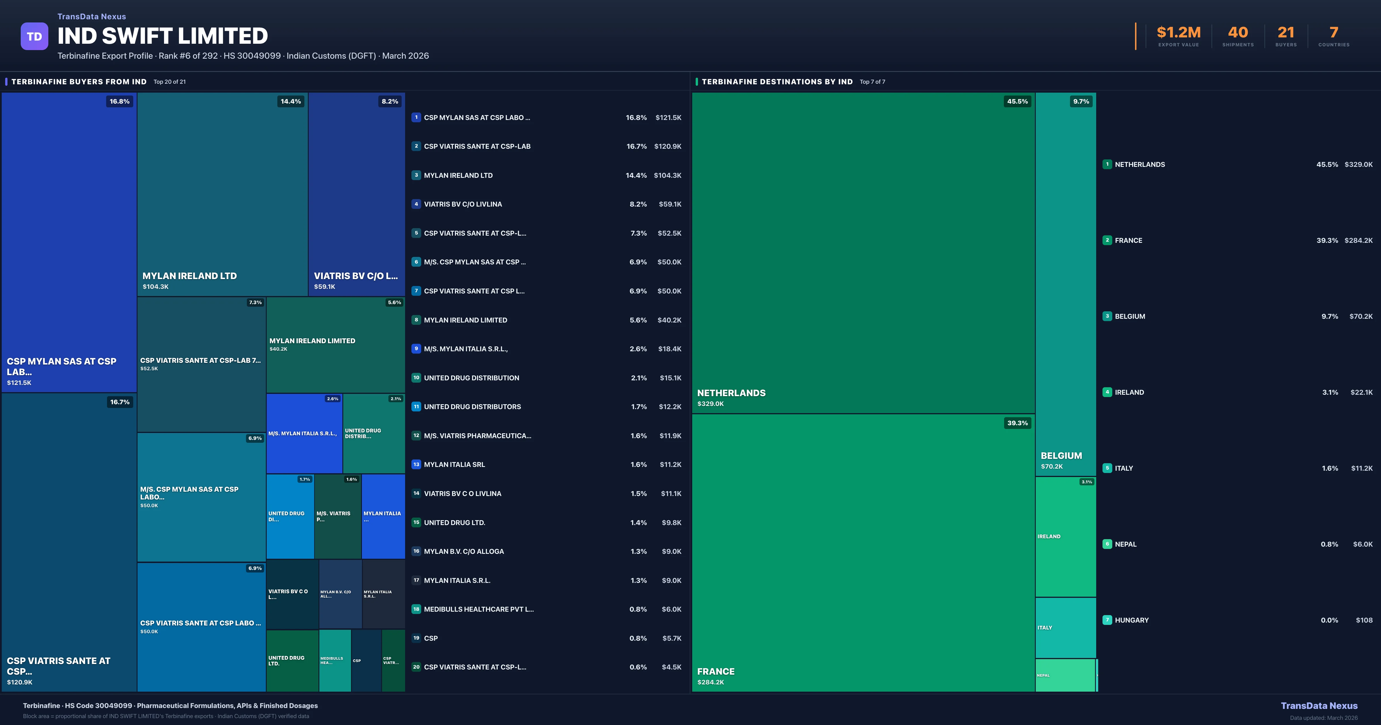 IND Swift Limited — Terbinafine Export Profile: Buyers & Destinations