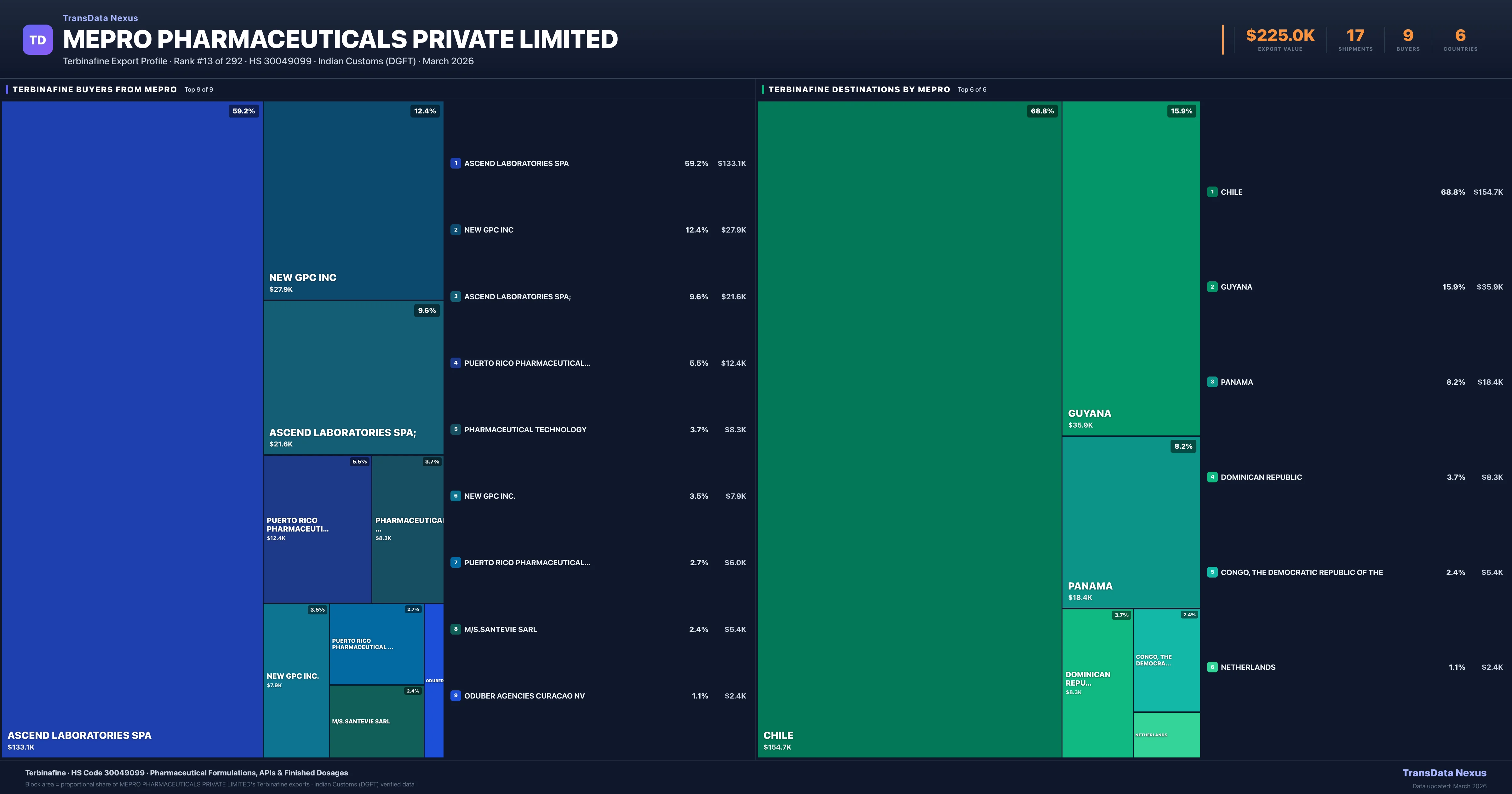 Mepro Pharmaceuticals Private Limited — Terbinafine Export Profile: Buyers & Destinations