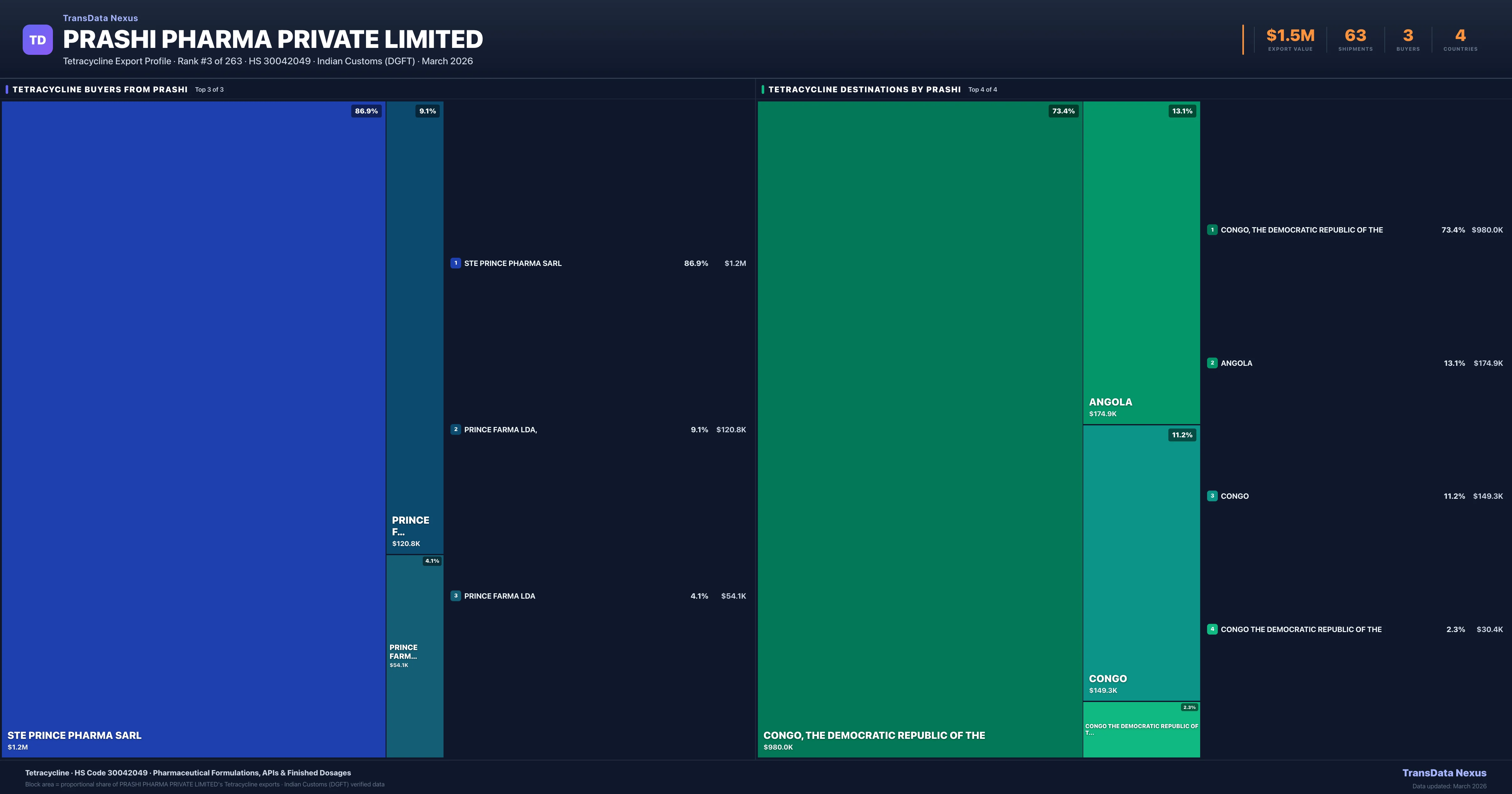 Prashi Pharma Private Limited — Tetracycline Export Profile: Buyers & Destinations