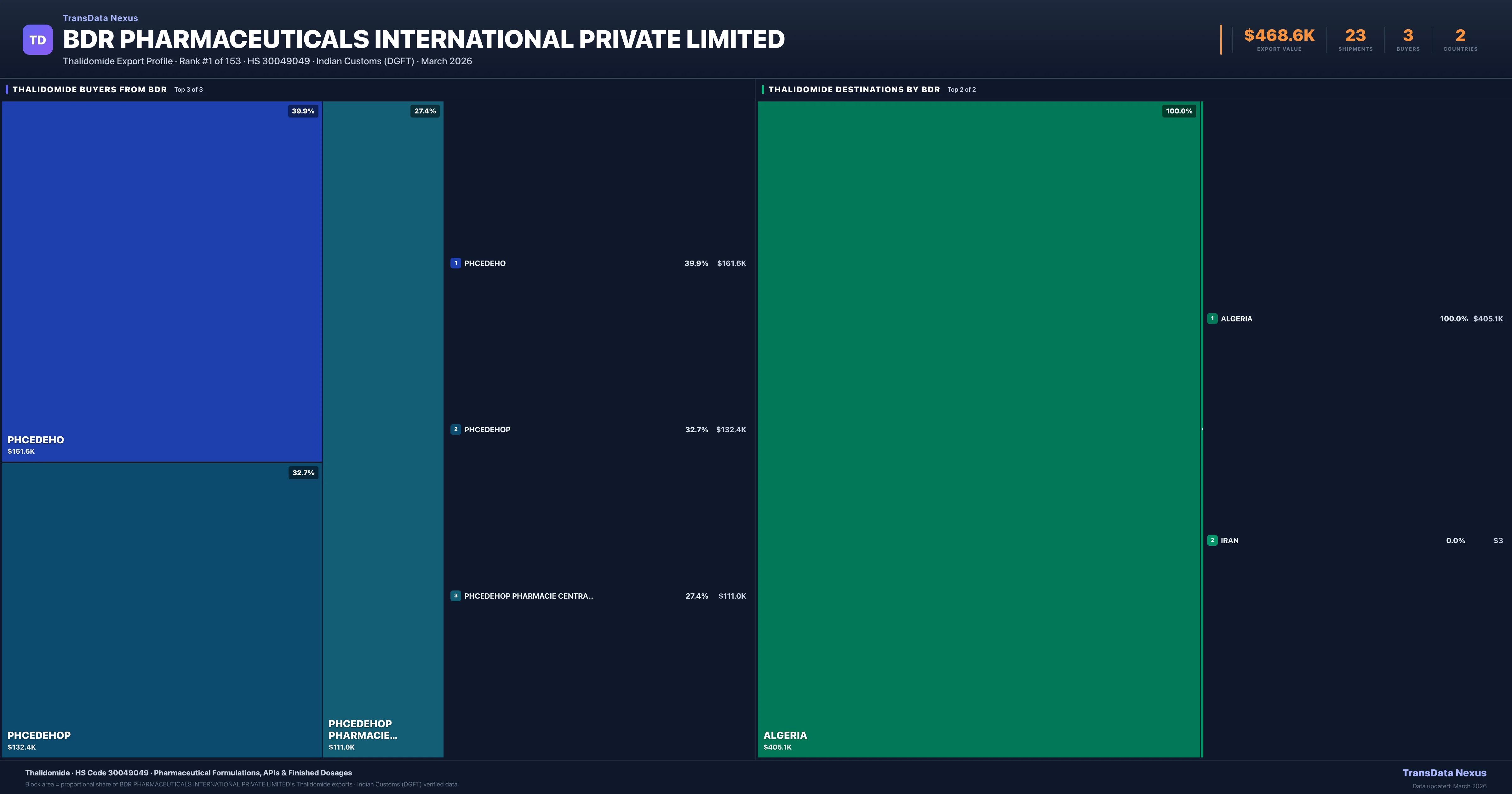 BDR Pharmaceuticals International Private Limited — Thalidomide Export Profile: Buyers & Destinations