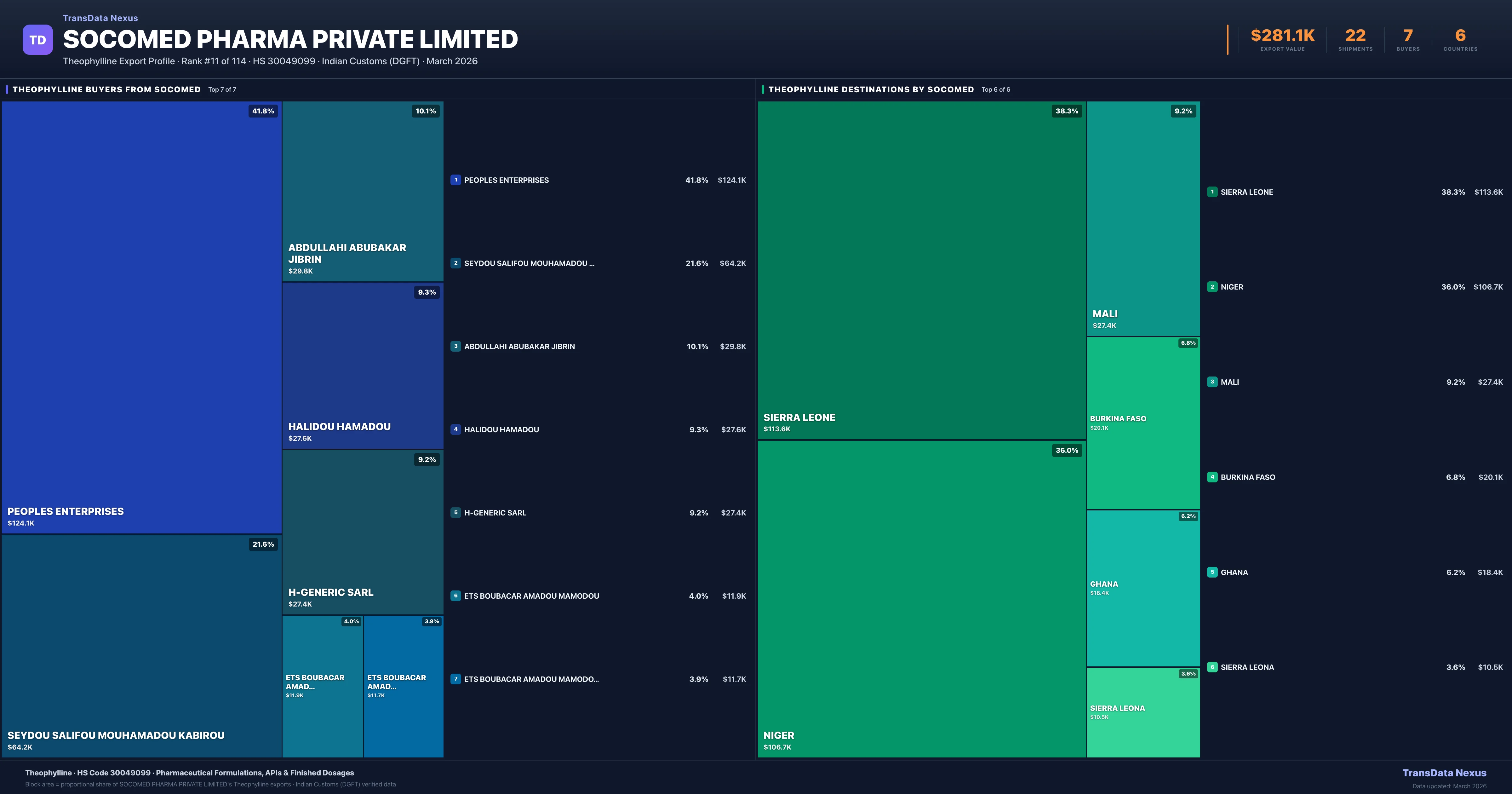 Socomed Pharma Private Limited — Theophylline Export Profile: Buyers & Destinations