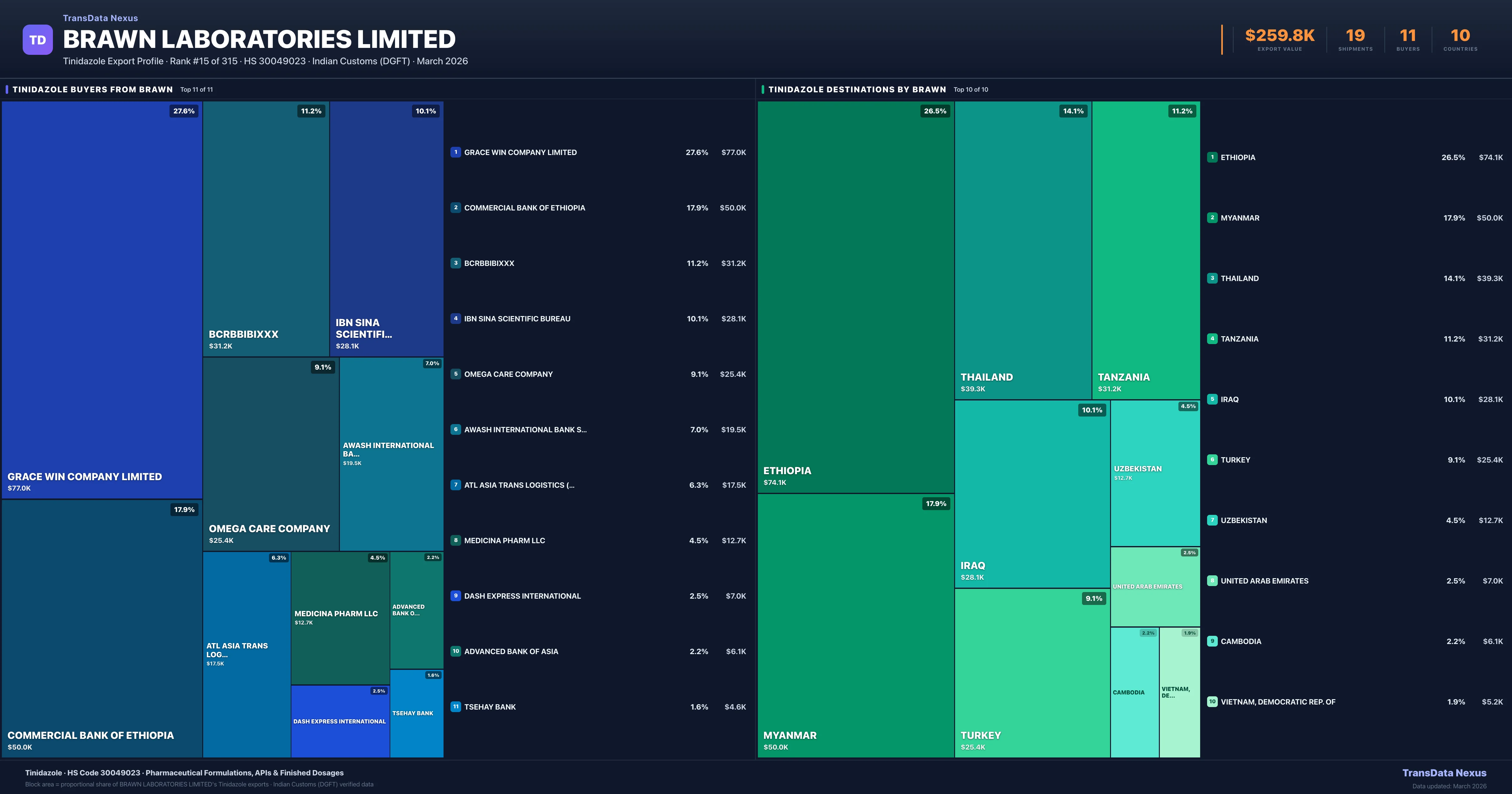Brawn Laboratories Limited — Tinidazole Export Profile: Buyers & Destinations