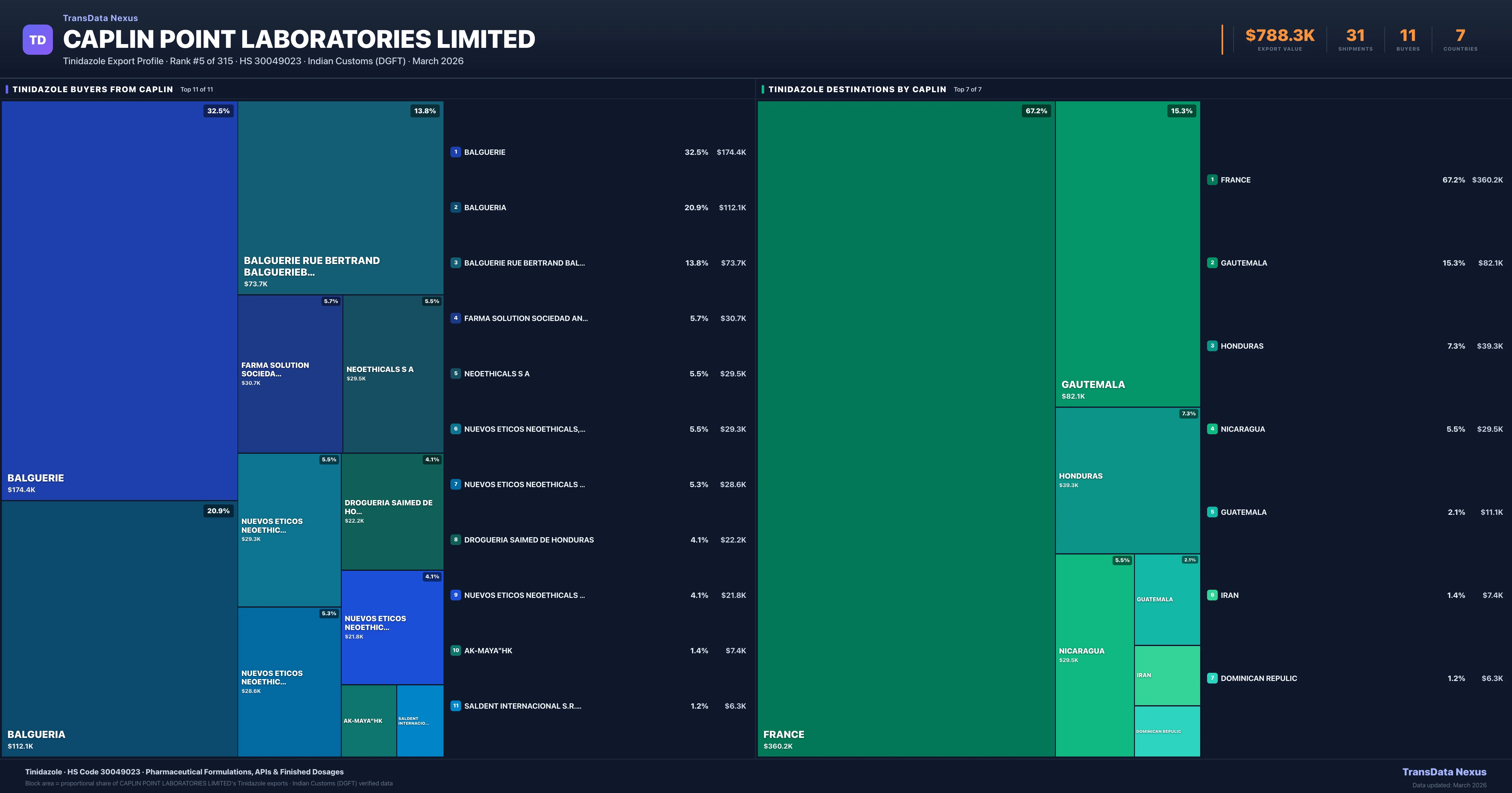 Caplin Point Laboratories Limited — Tinidazole Export Profile: Buyers & Destinations