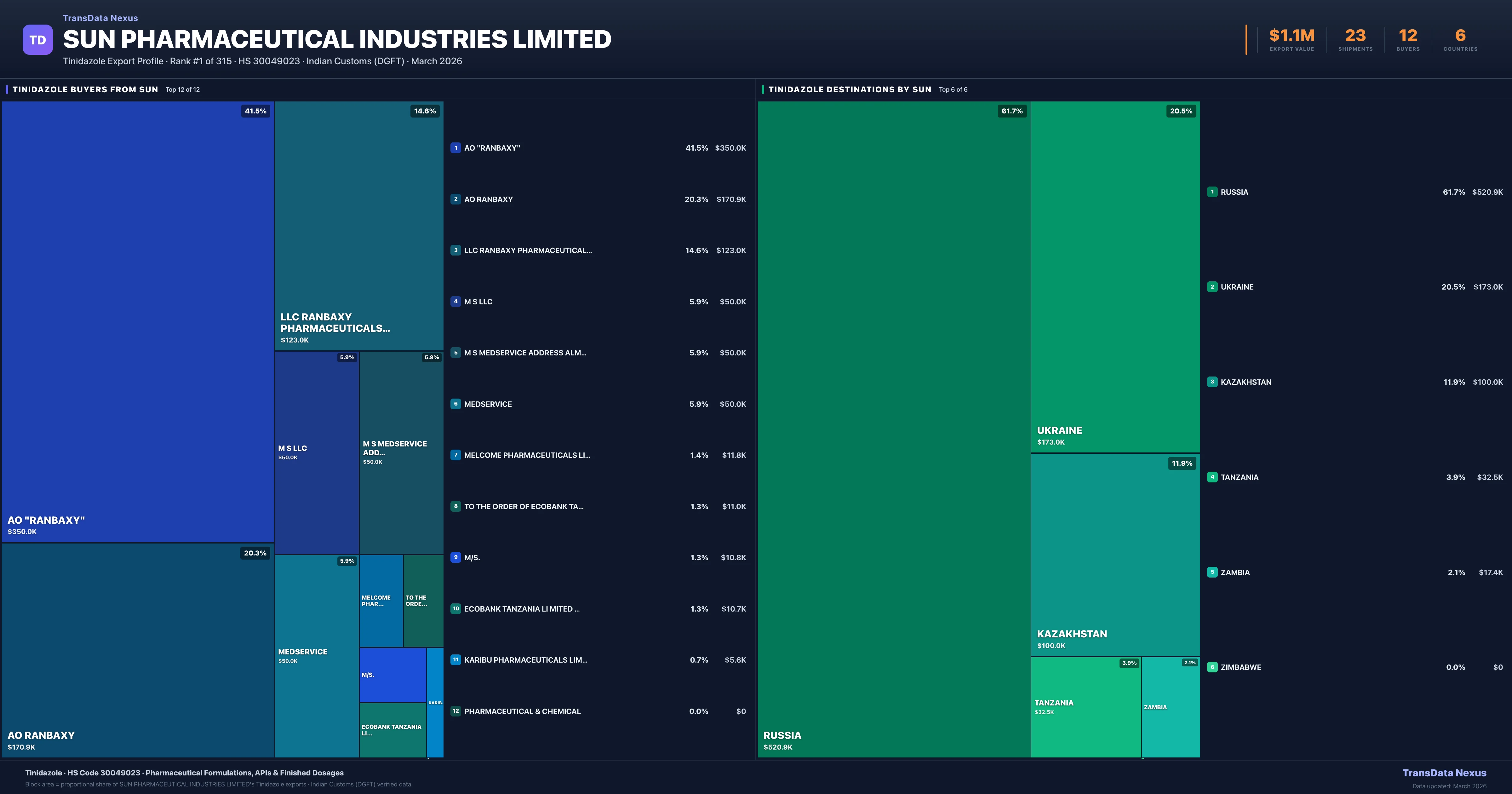 SUN Pharmaceutical Industries Limited — Tinidazole Export Profile: Buyers & Destinations