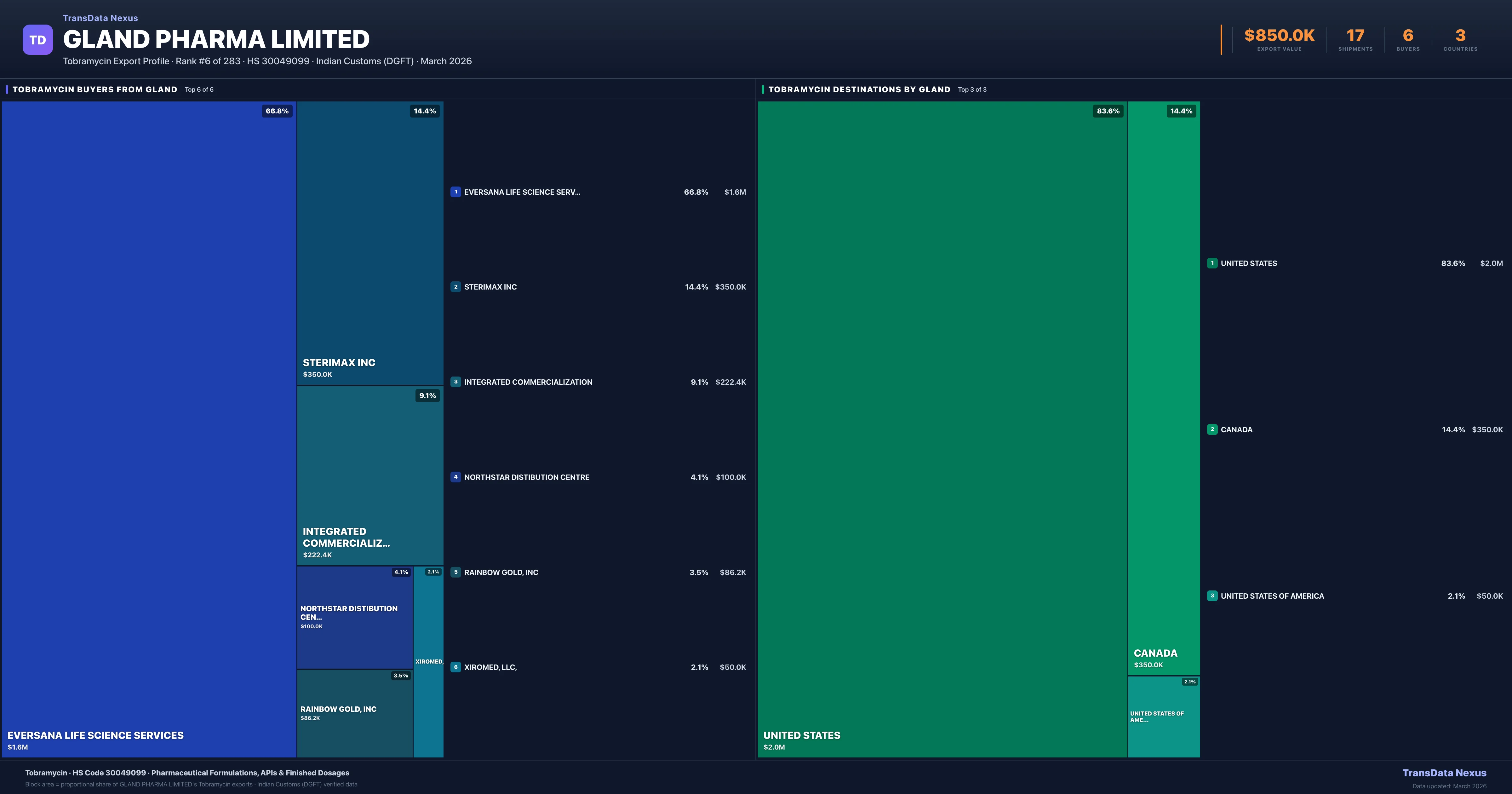 Gland Pharma Limited — Tobramycin Export Profile: Buyers & Destinations