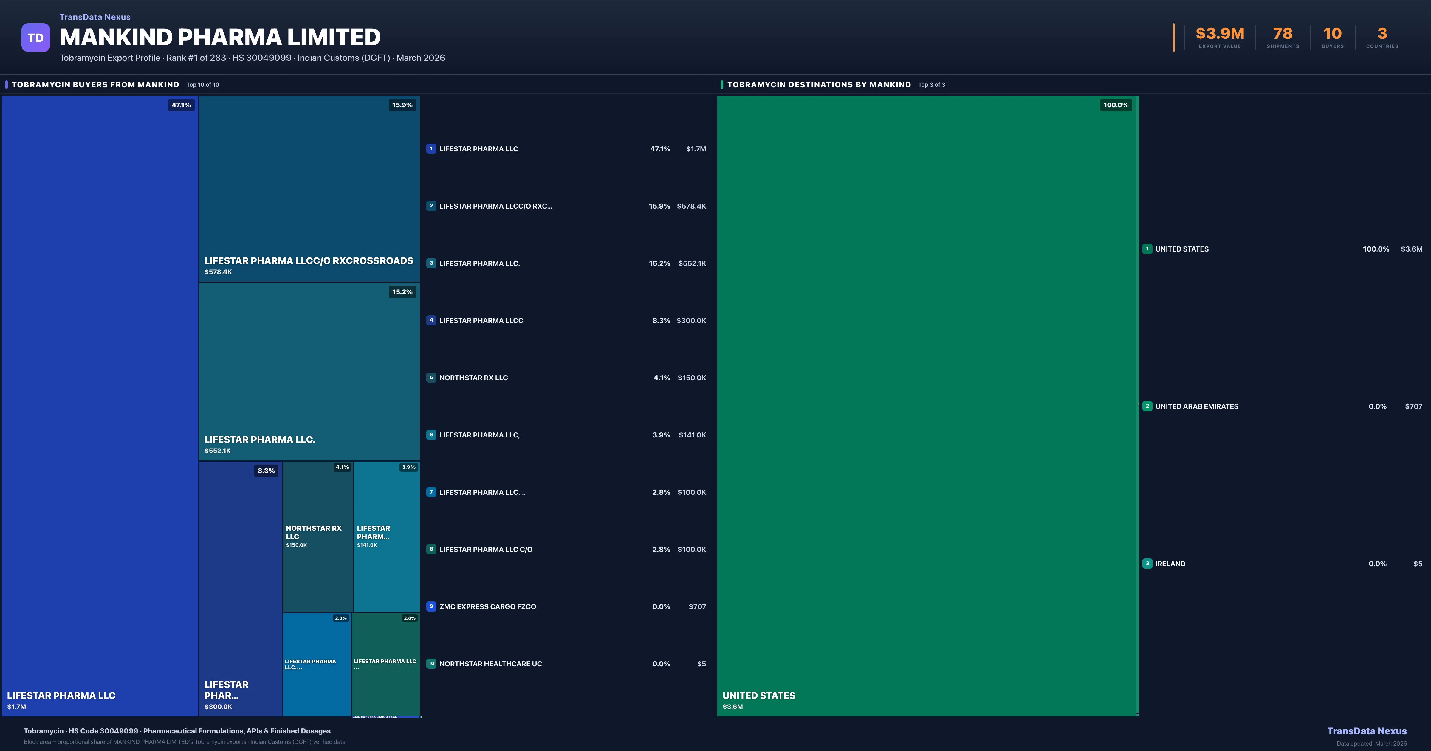 Mankind Pharma Limited — Tobramycin Export Profile: Buyers & Destinations