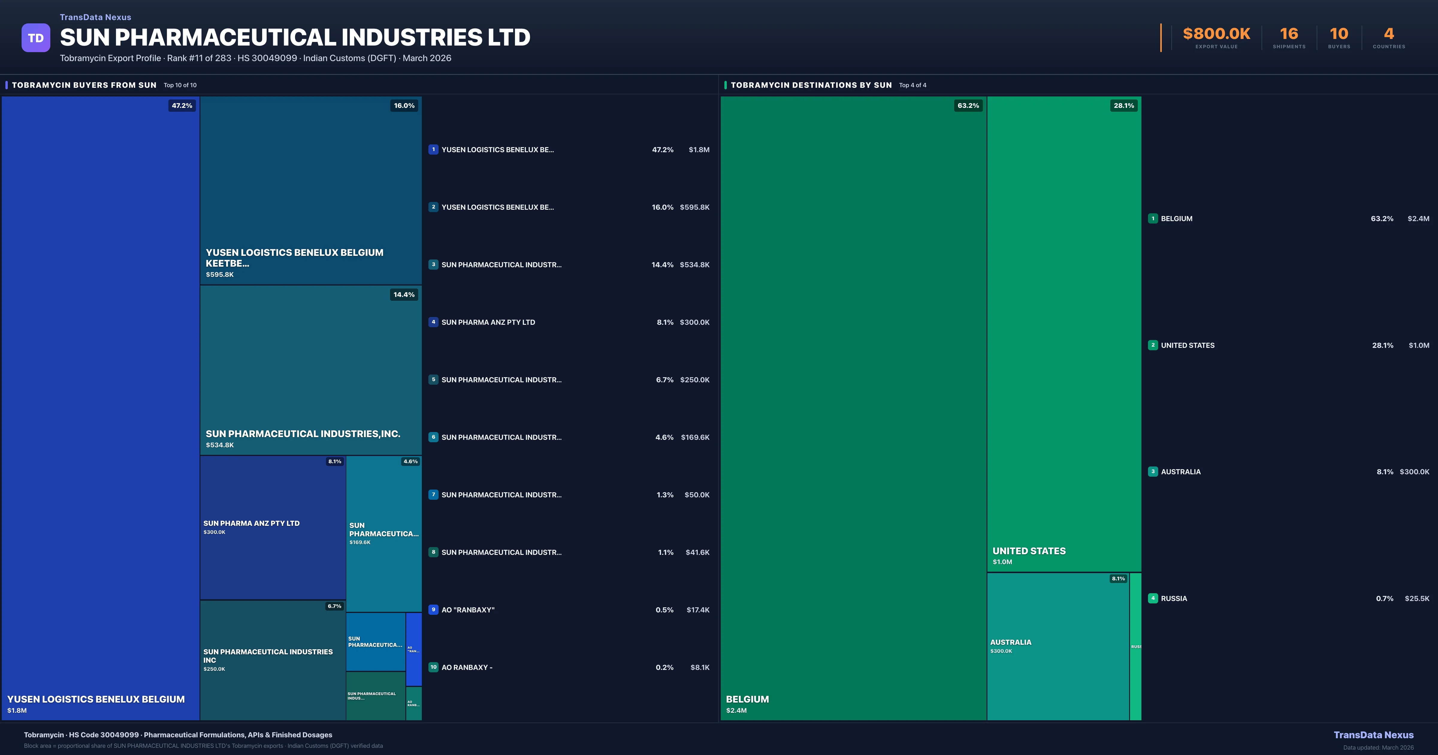 Sun Pharmaceutical Industries Ltd — Tobramycin Export Profile: Buyers & Destinations