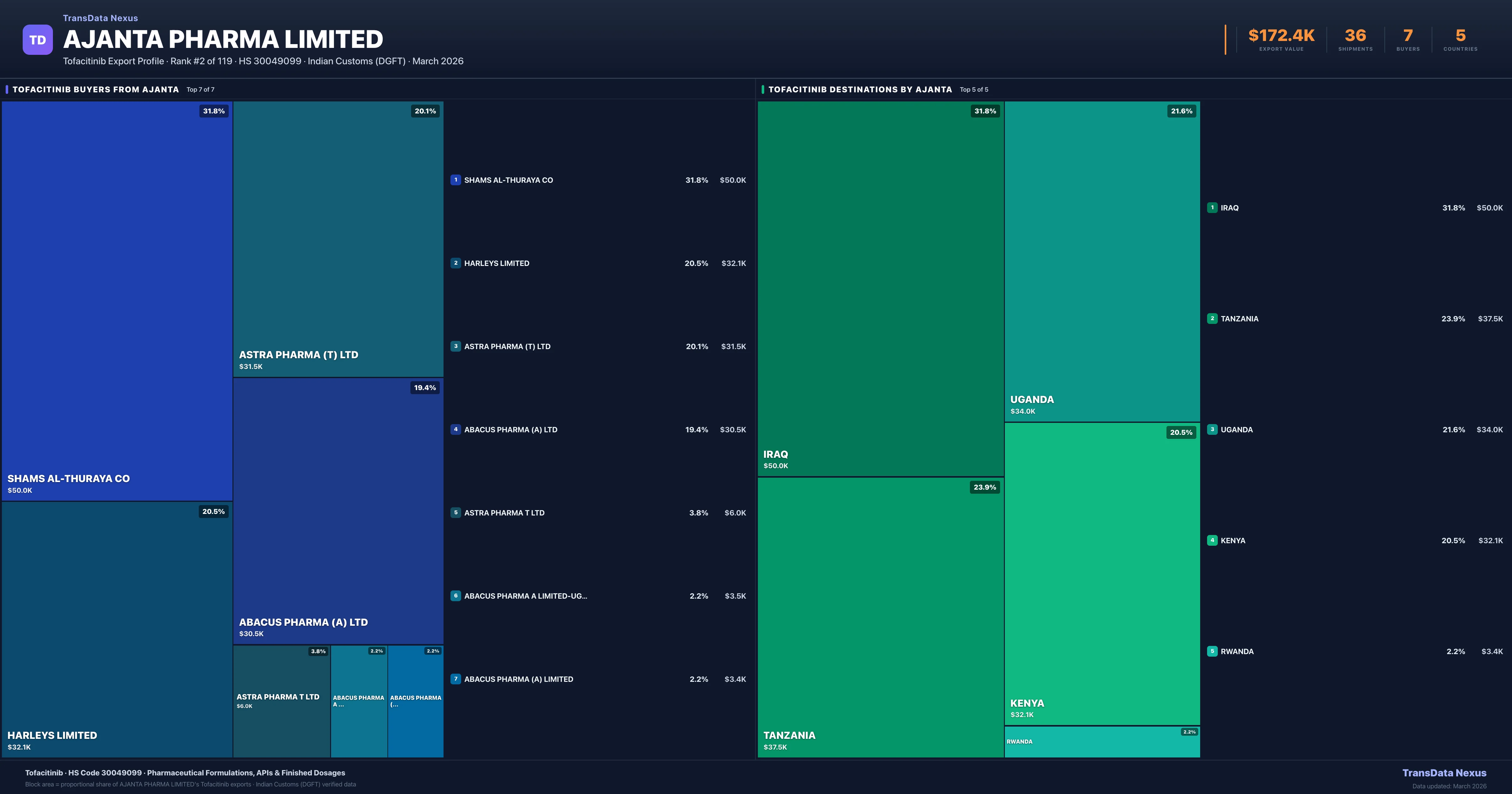 Ajanta Pharma Limited — Tofacitinib Export Profile: Buyers & Destinations