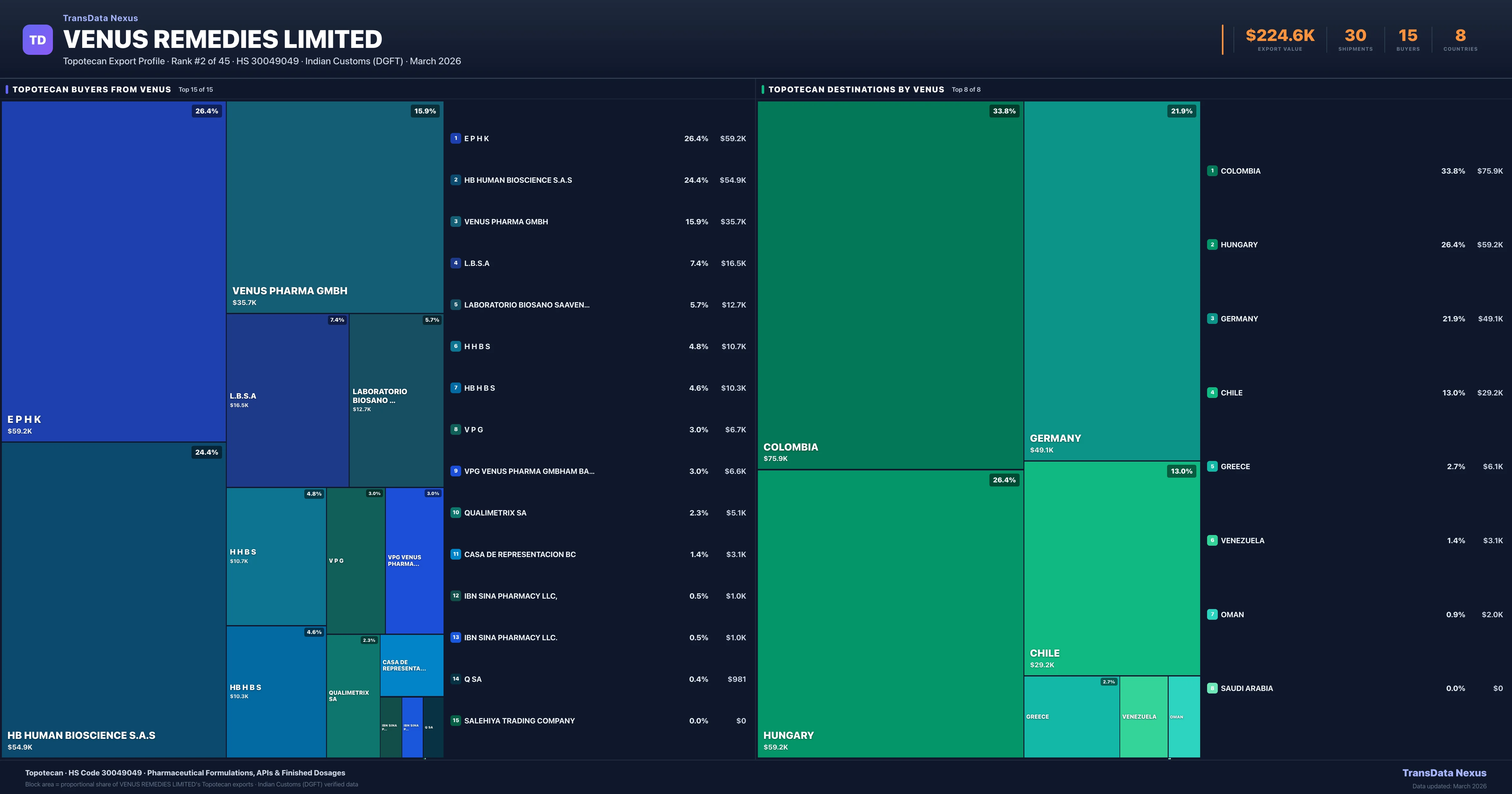 Venus Remedies Limited β Topotecan Export Profile: Buyers & Destinations