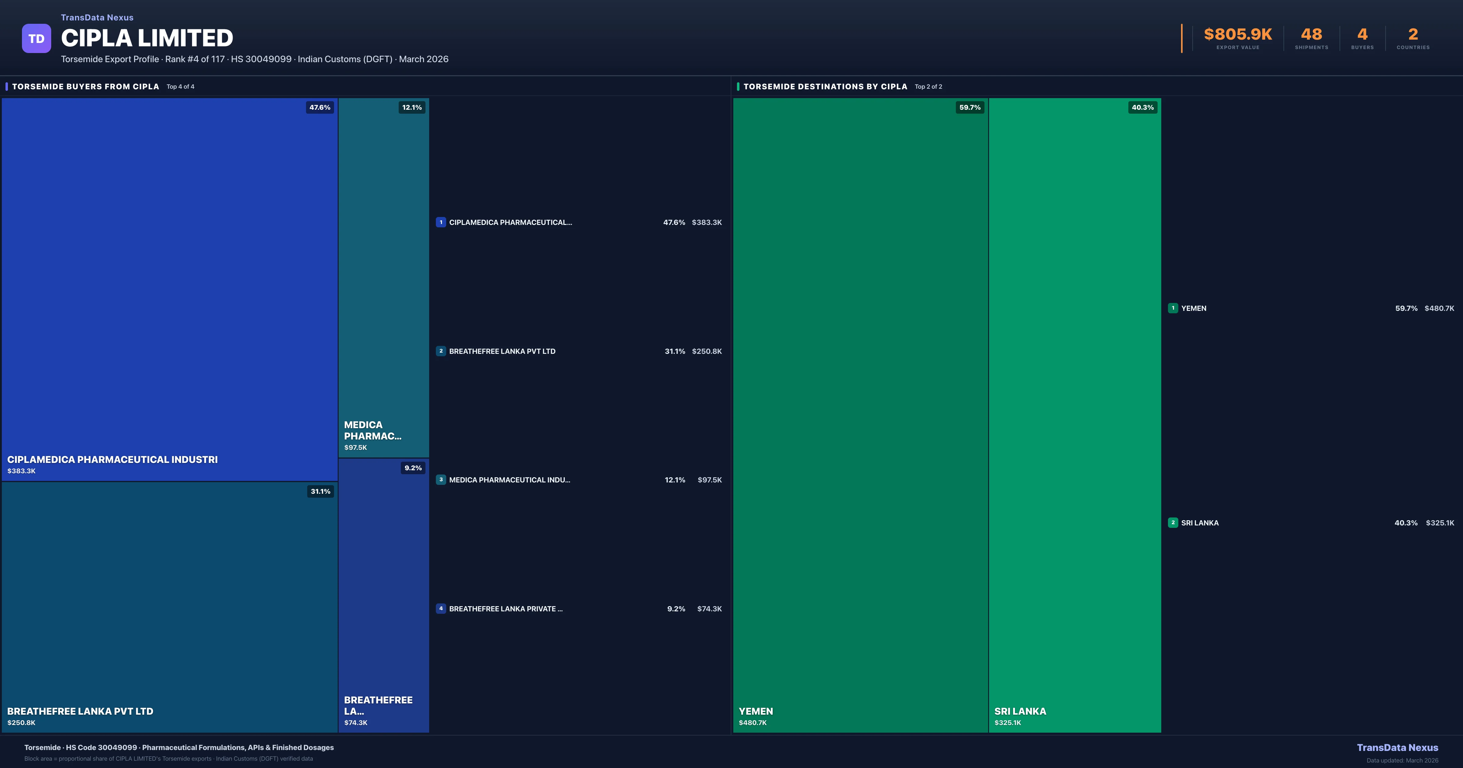 Cipla Limited — Torsemide Export Profile: Buyers & Destinations