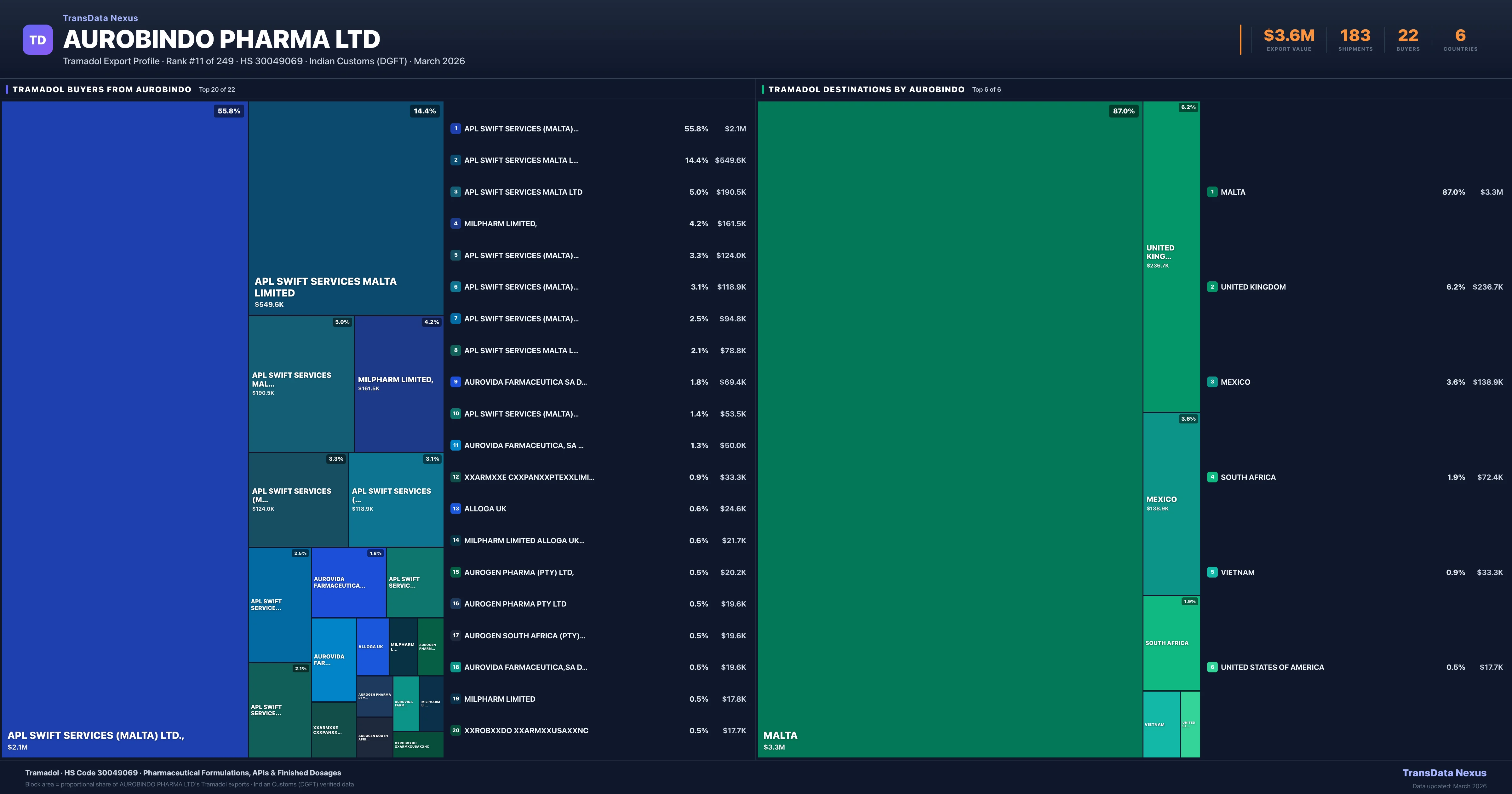 Aurobindo Pharma Ltd — Tramadol Export Profile: Buyers & Destinations