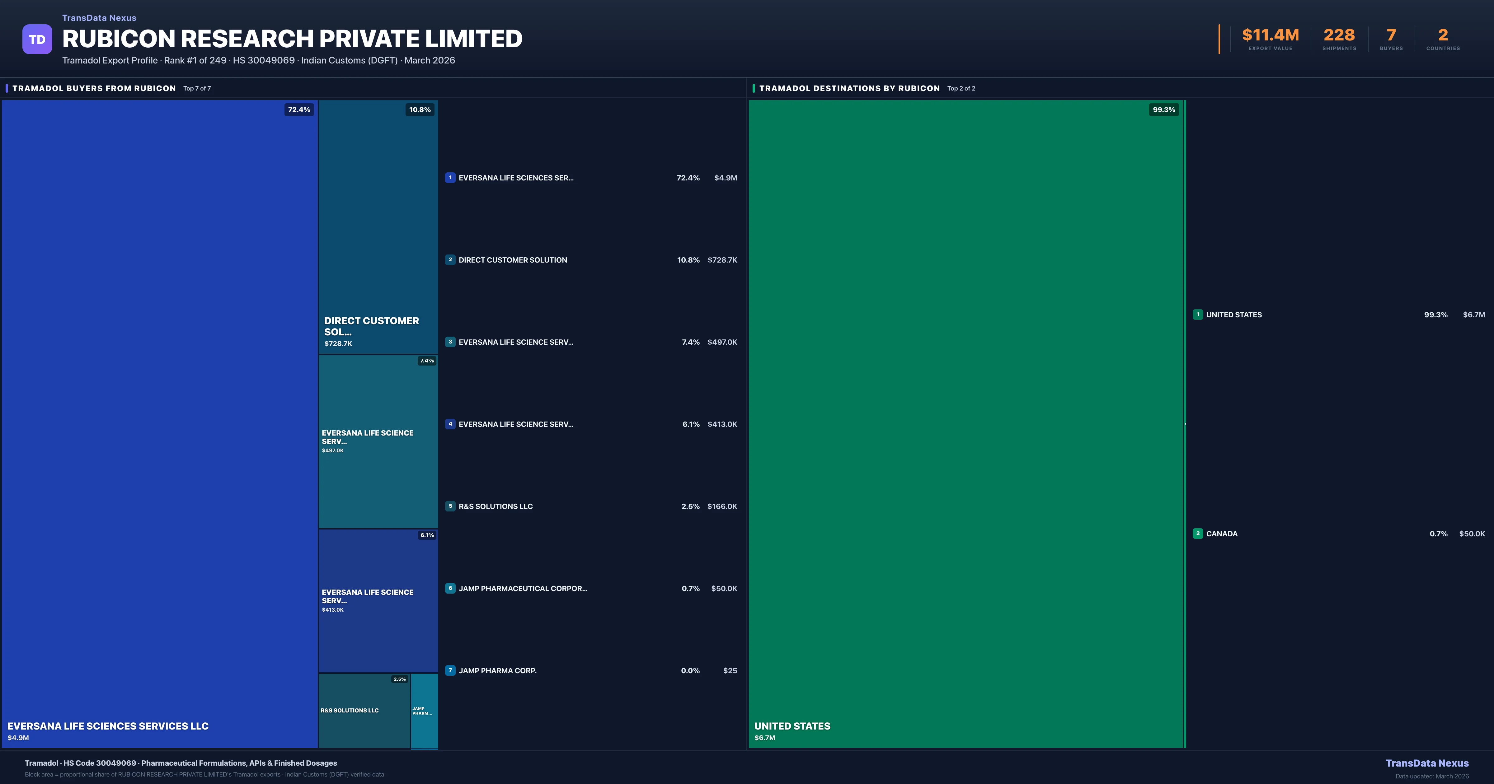 Rubicon Research Private Limited — Tramadol Export Profile: Buyers & Destinations