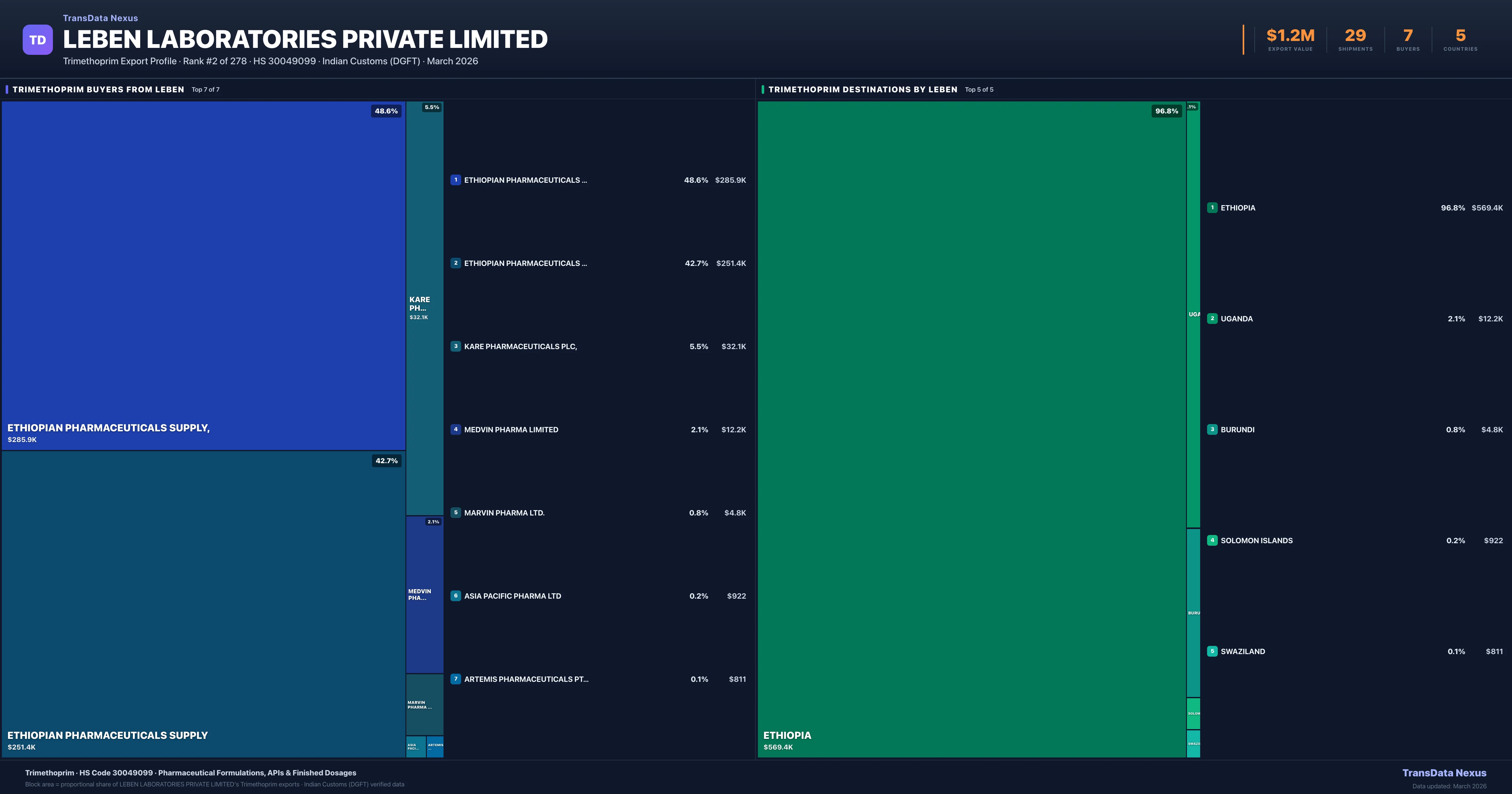 Leben Laboratories Private Limited — Trimethoprim Export Profile: Buyers & Destinations