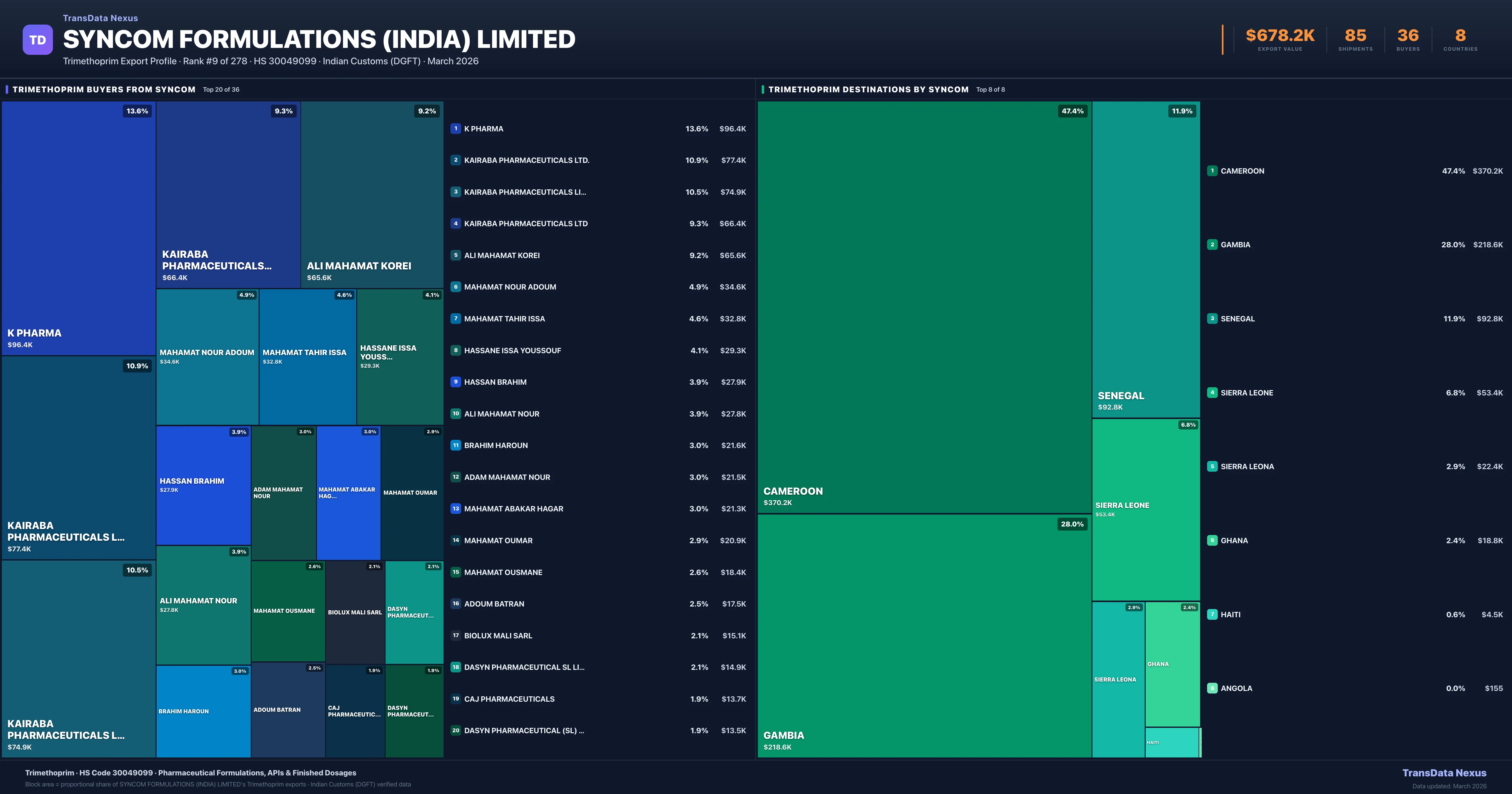 Syncom Formulations (india) Limited — Trimethoprim Export Profile: Buyers & Destinations