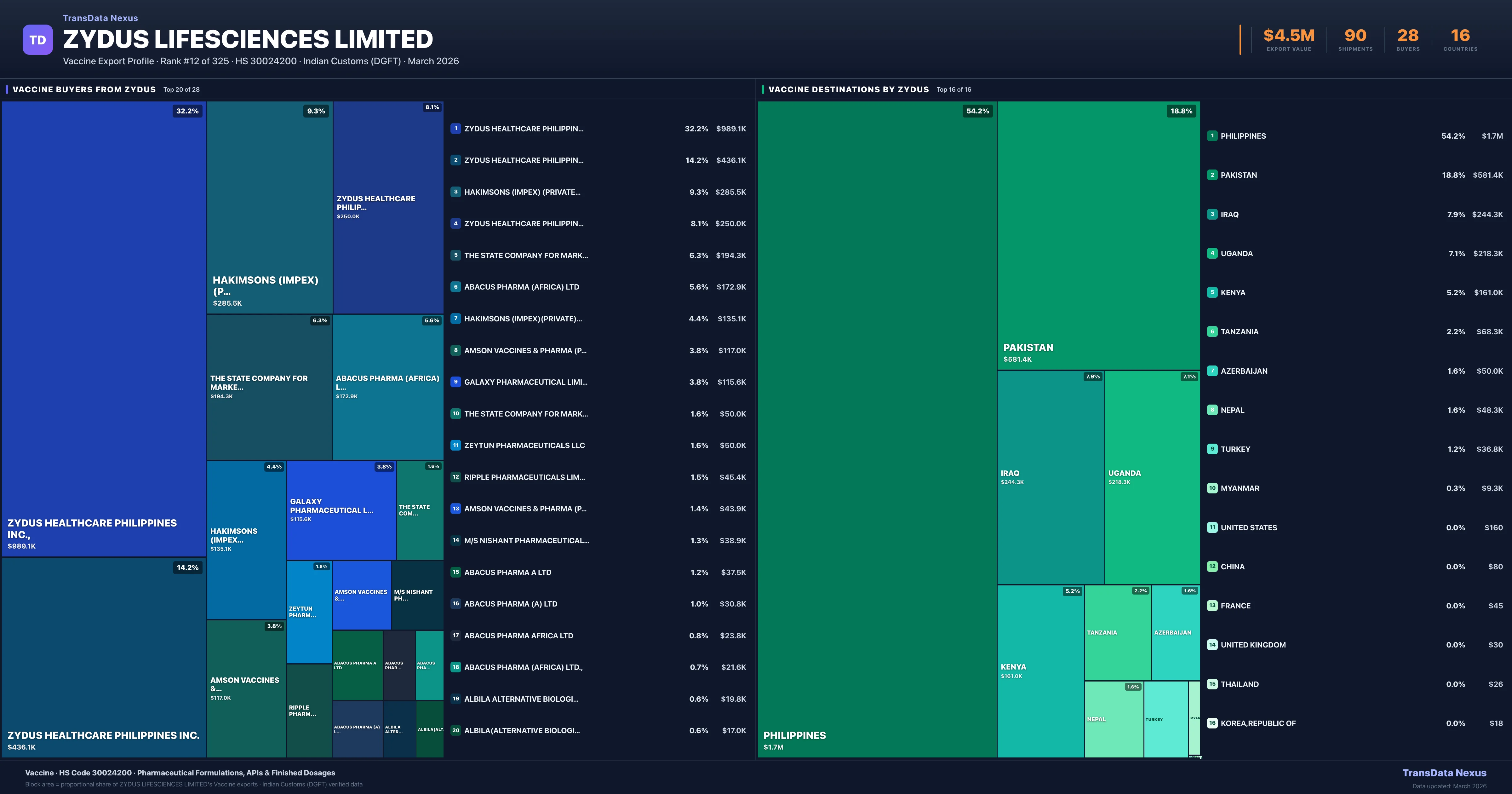 Zydus Lifesciences Limited — Vaccine Export Profile: Buyers & Destinations