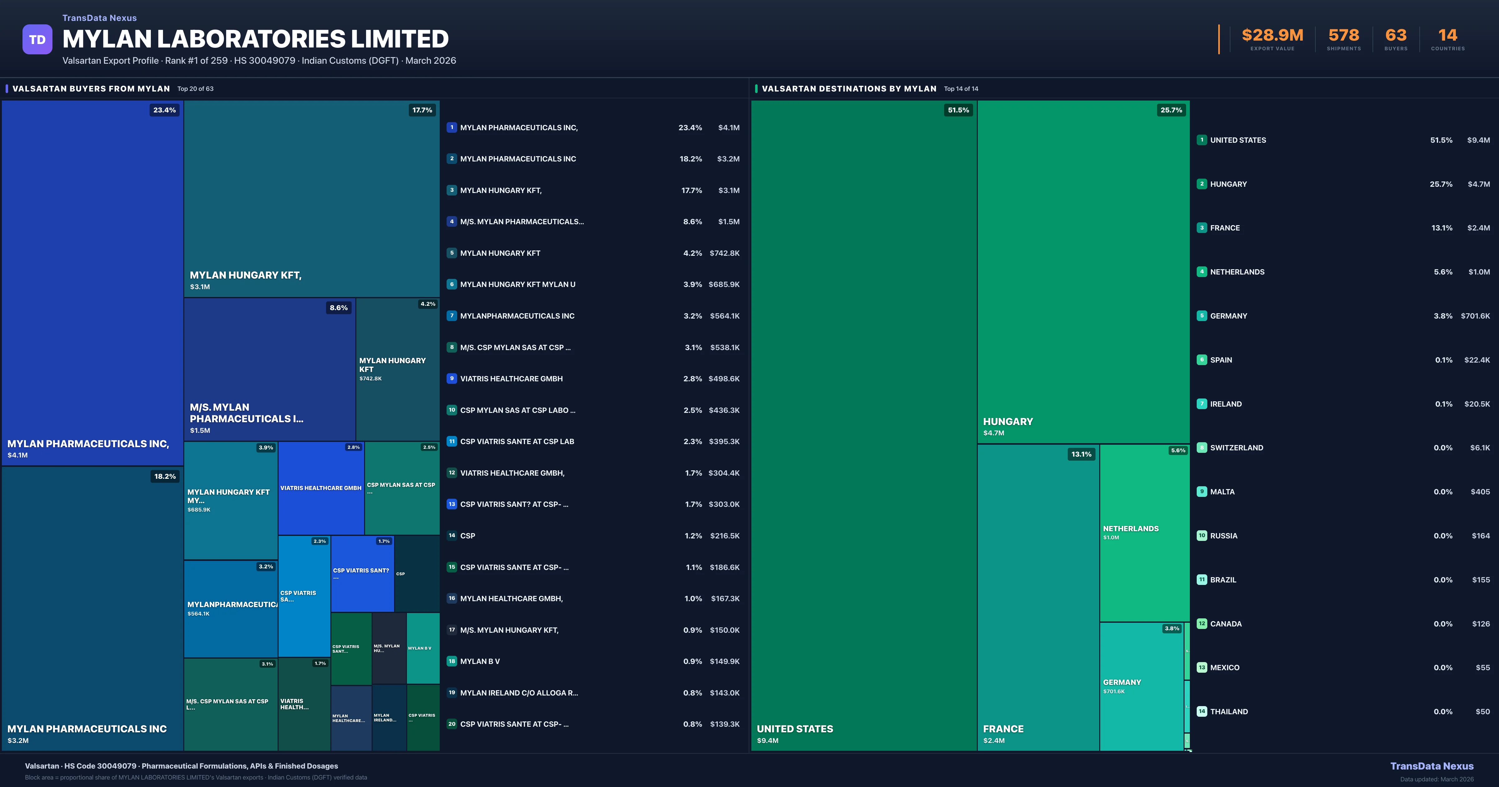 Mylan Laboratories Limited — Valsartan Export Profile: Buyers & Destinations