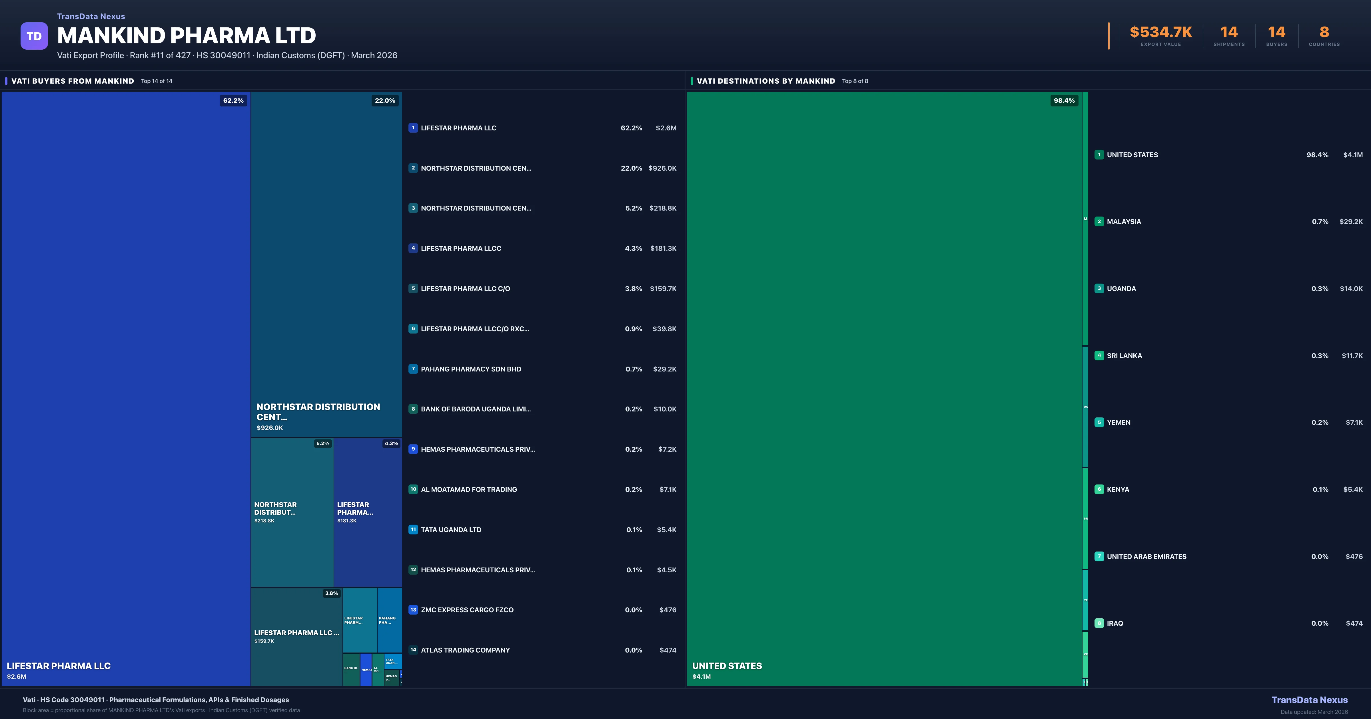 Mankind Pharma Ltd β Vati Export Profile: Buyers & Destinations