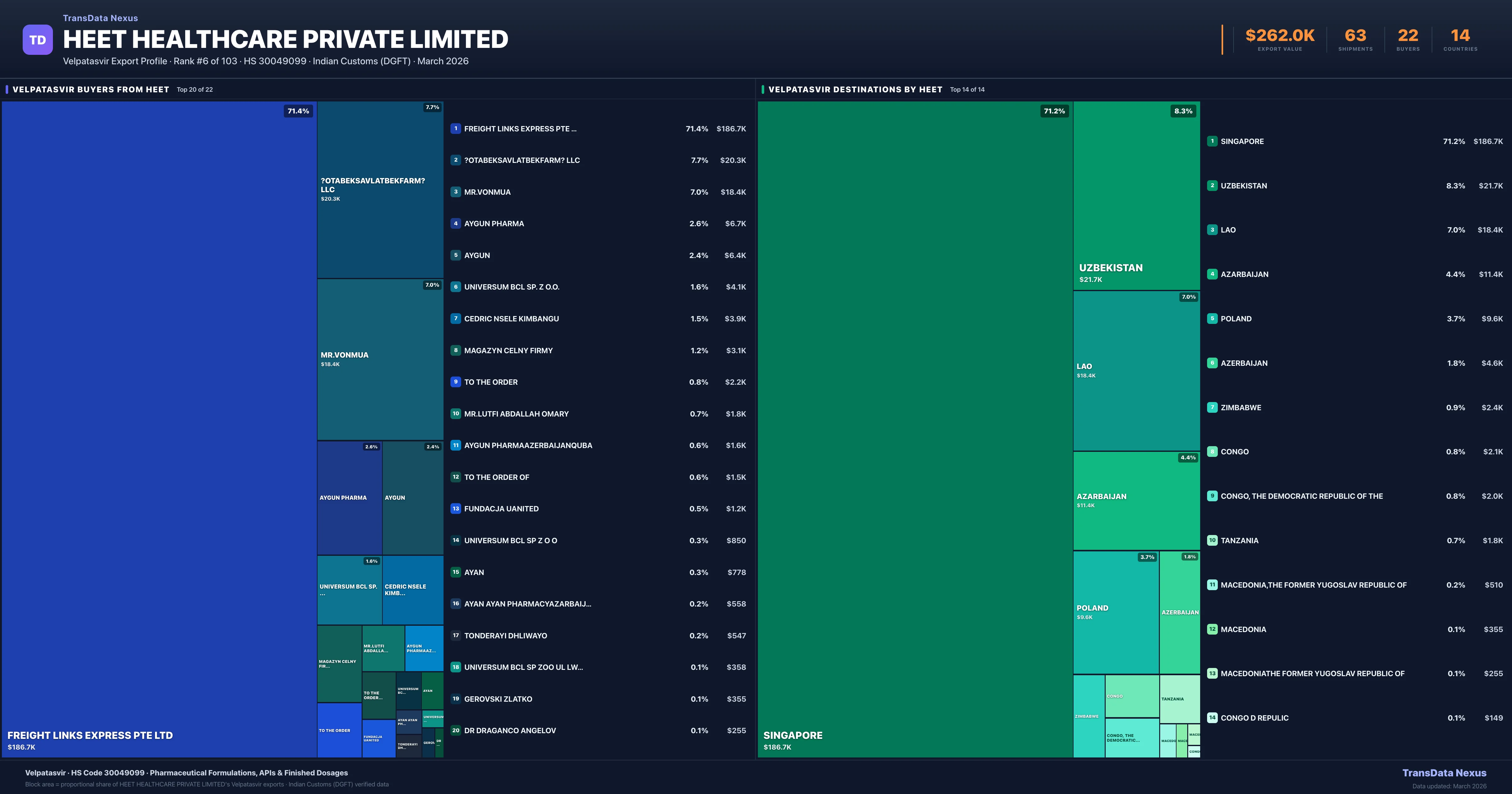 Heet Healthcare Private Limited — Velpatasvir Export Profile: Buyers & Destinations