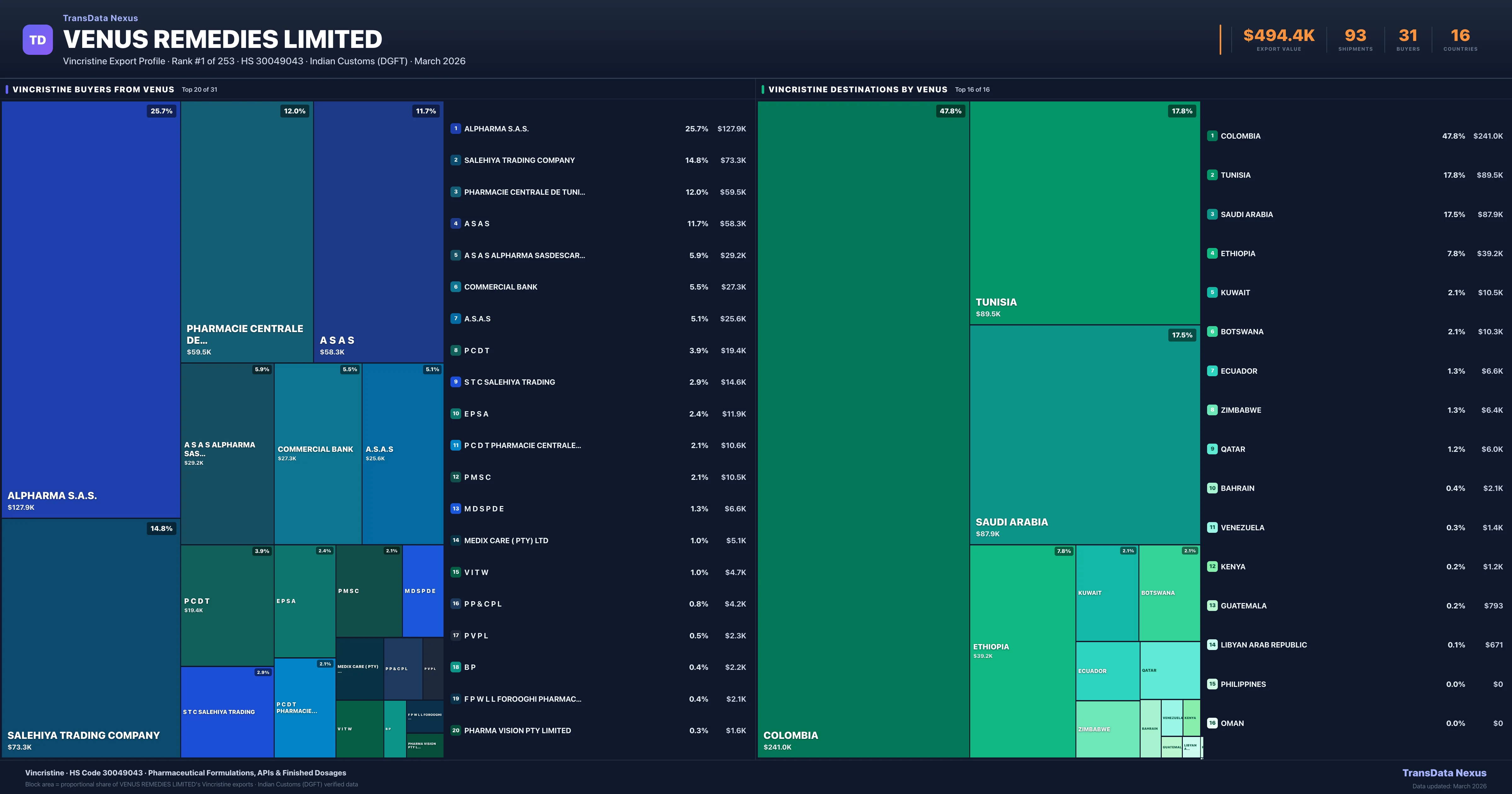 Venus Remedies Limited — Vincristine Export Profile: Buyers & Destinations