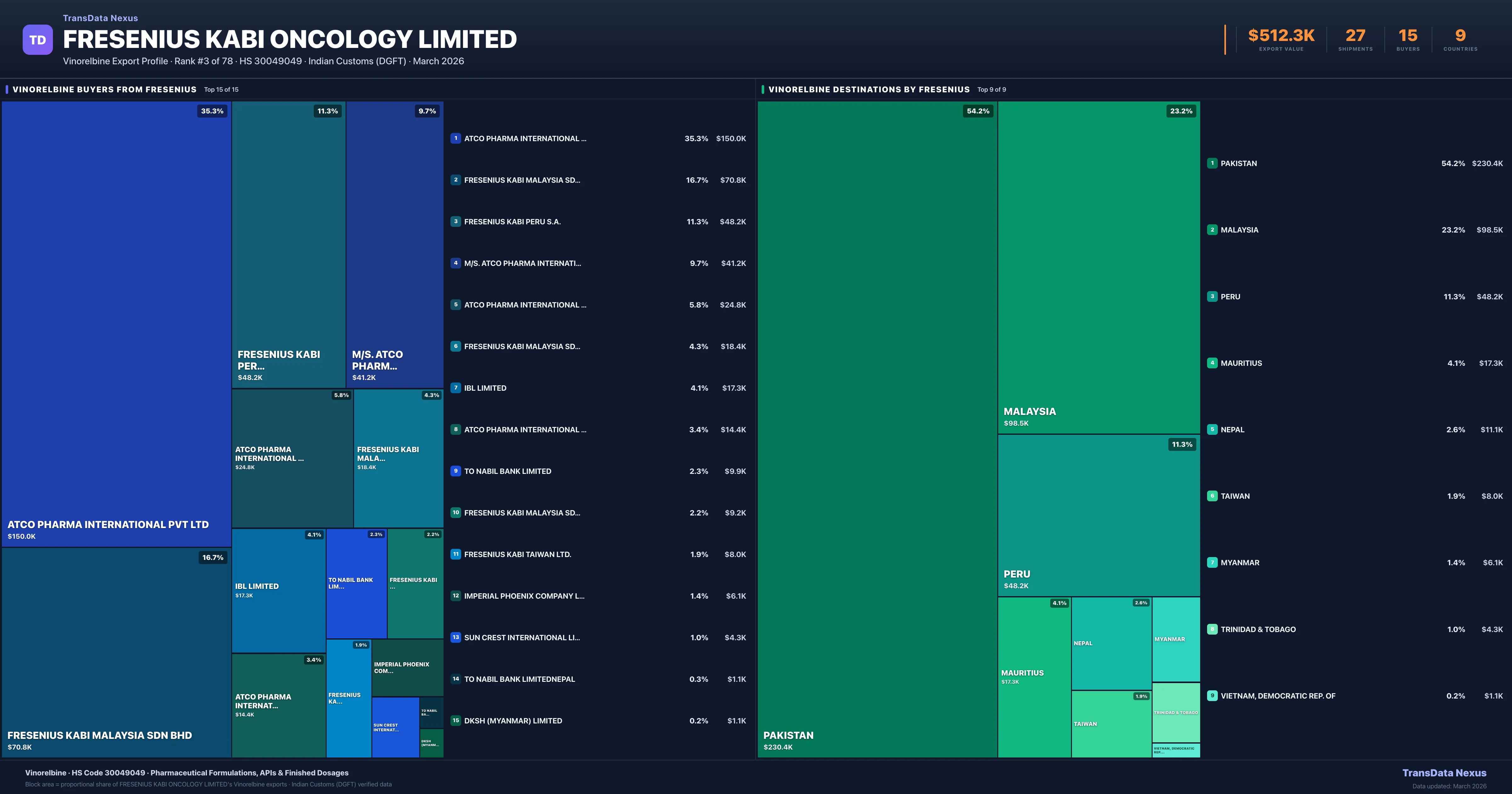 Fresenius Kabi Oncology Limited — Vinorelbine Export Profile: Buyers & Destinations