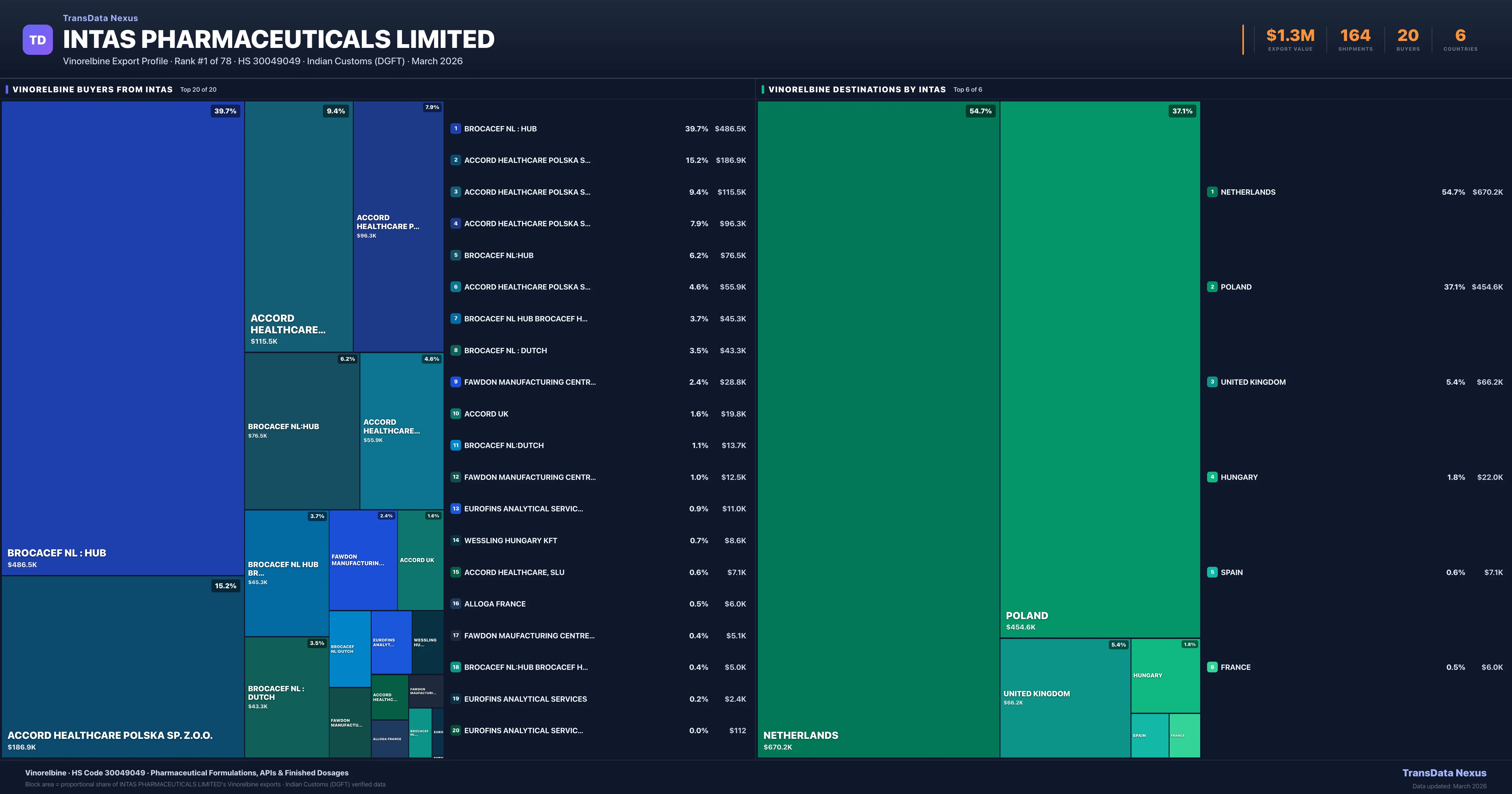 Intas Pharmaceuticals Limited — Vinorelbine Export Profile: Buyers & Destinations