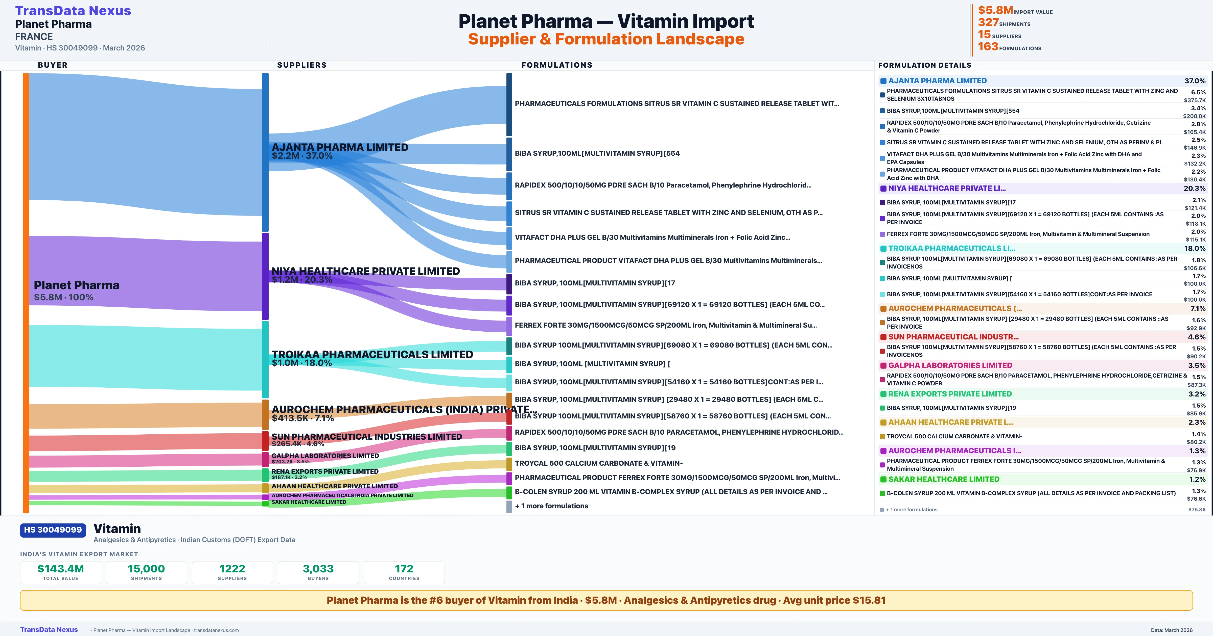 PLANET PHARMA — Vitamin Import Profile: Suppliers, Formulations & Sources