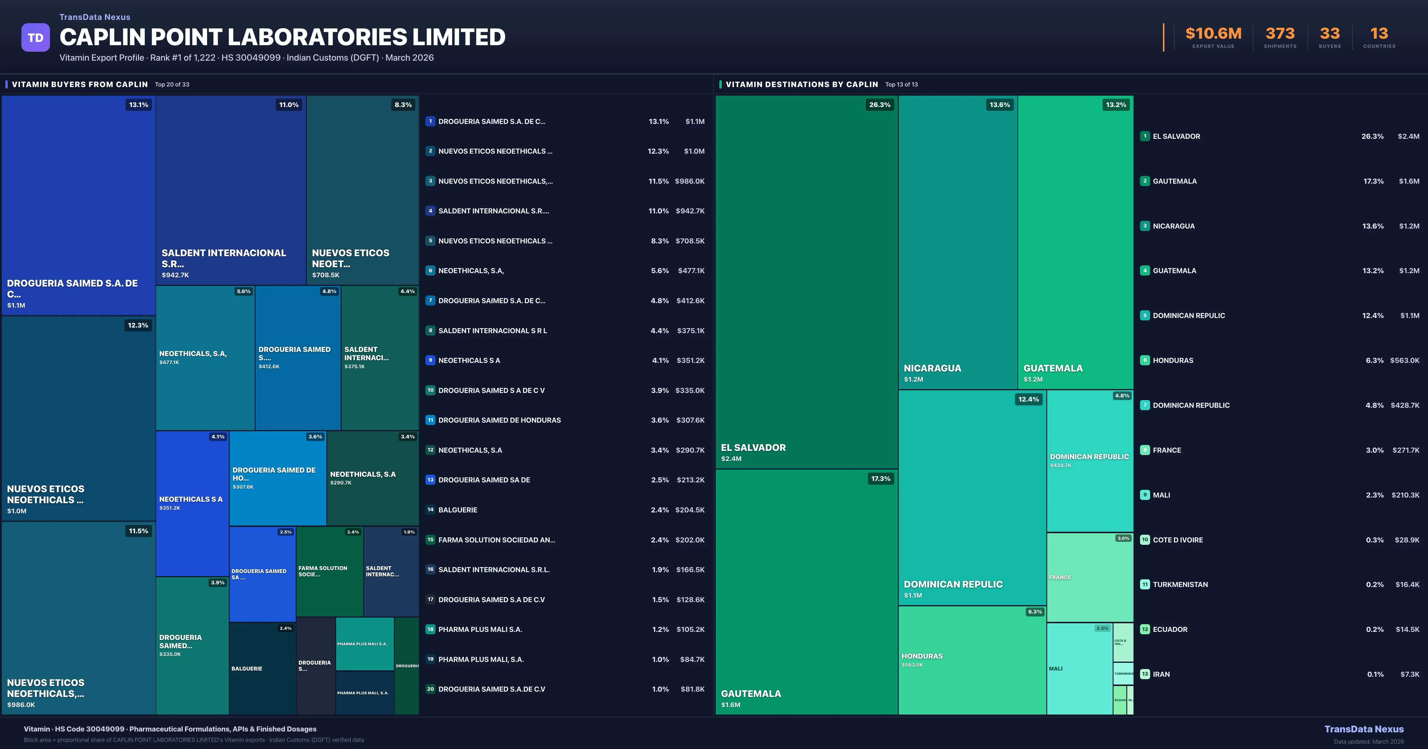 Caplin Point Laboratories Limited — Vitamin Export Profile: Buyers & Destinations