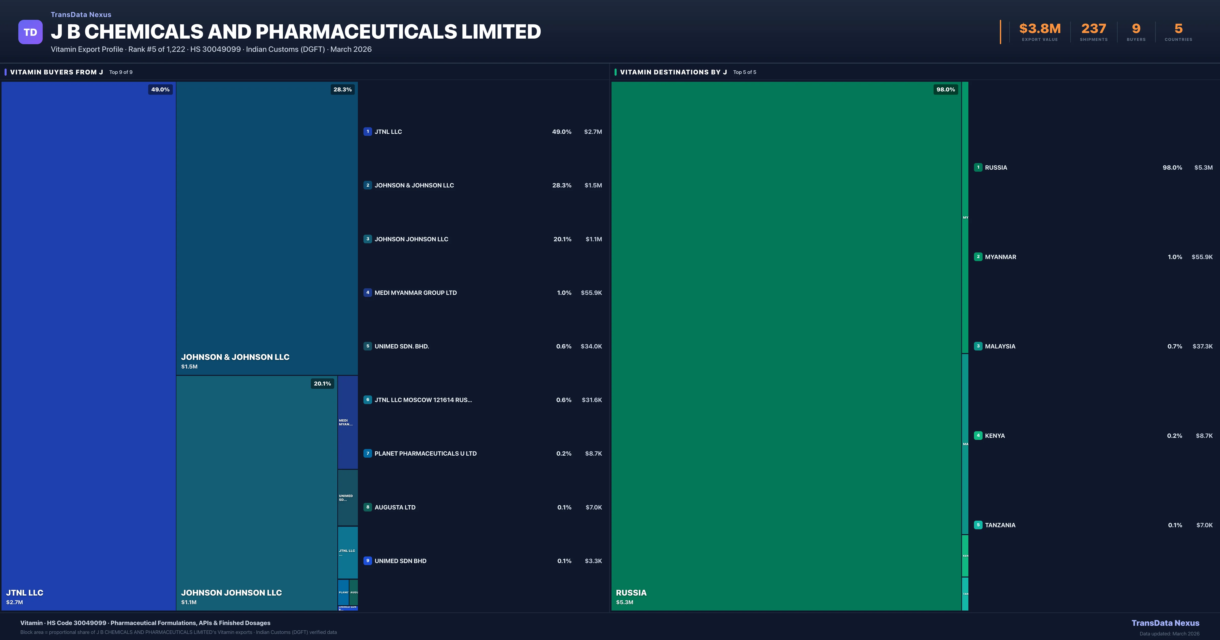 J B Chemicals AND Pharmaceuticals Limited β Vitamin Export Profile: Buyers & Destinations