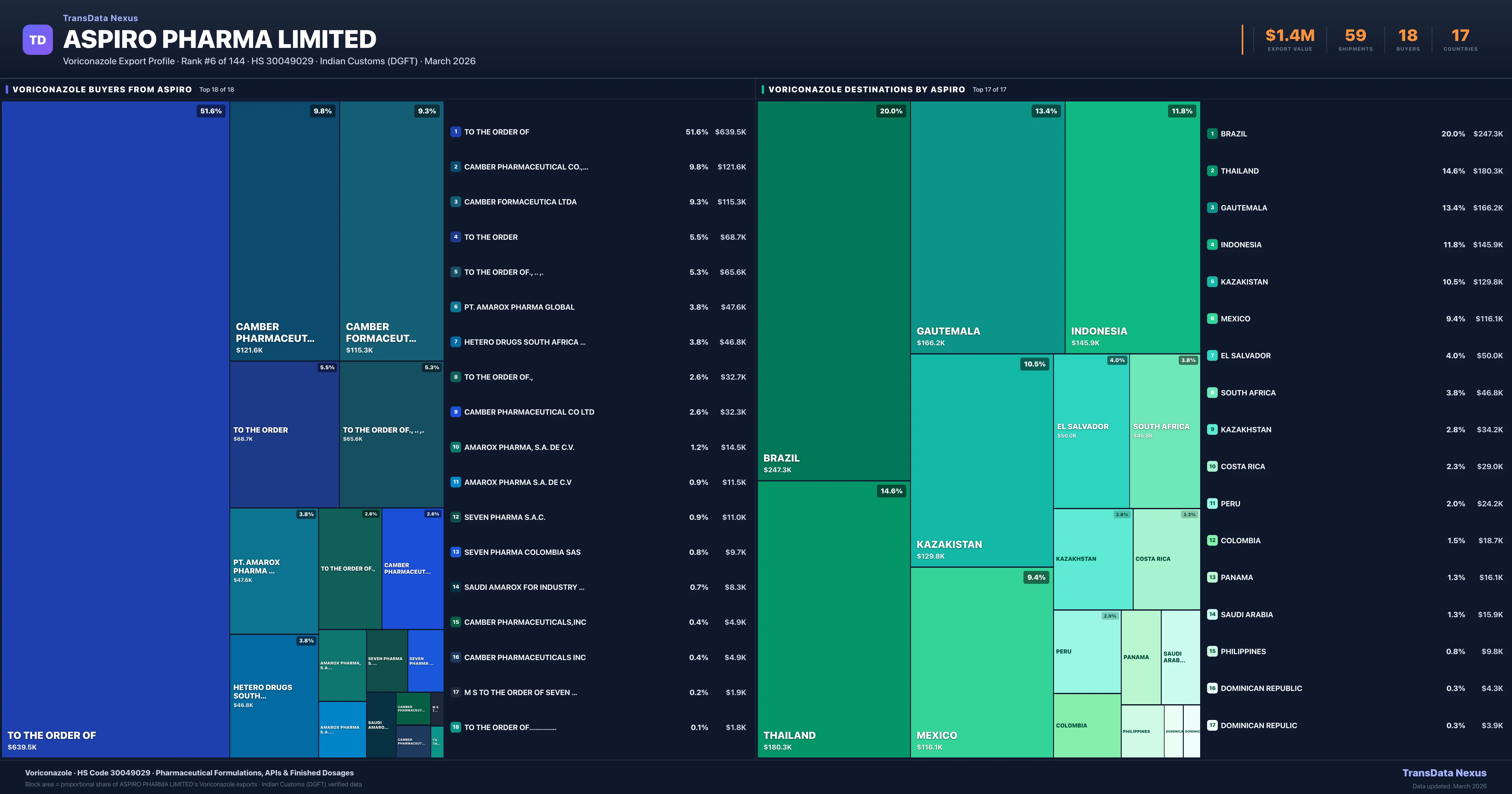 Aspiro Pharma Limited β Voriconazole Export Profile: Buyers & Destinations