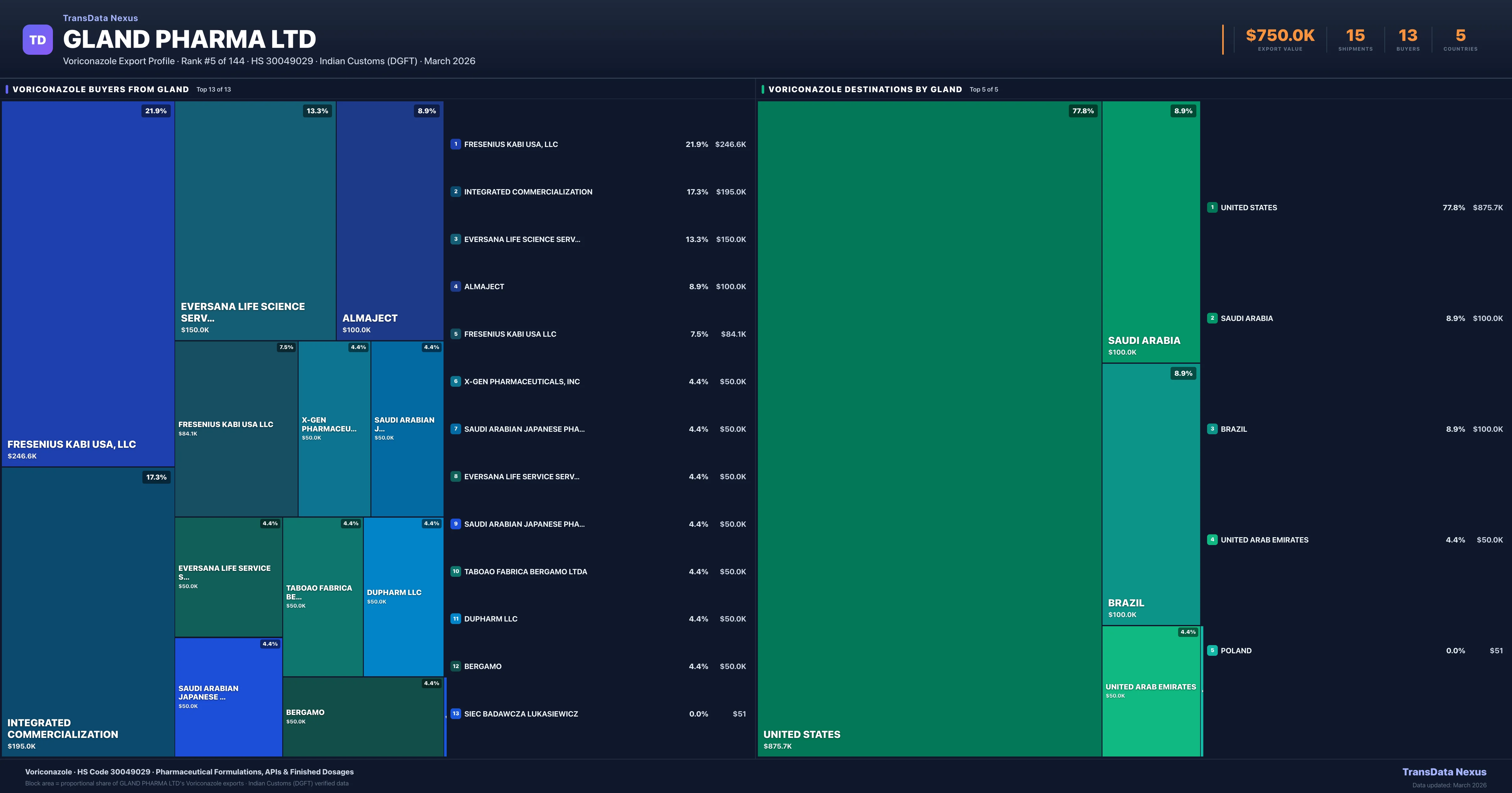 Gland Pharma Ltd — Voriconazole Export Profile: Buyers & Destinations