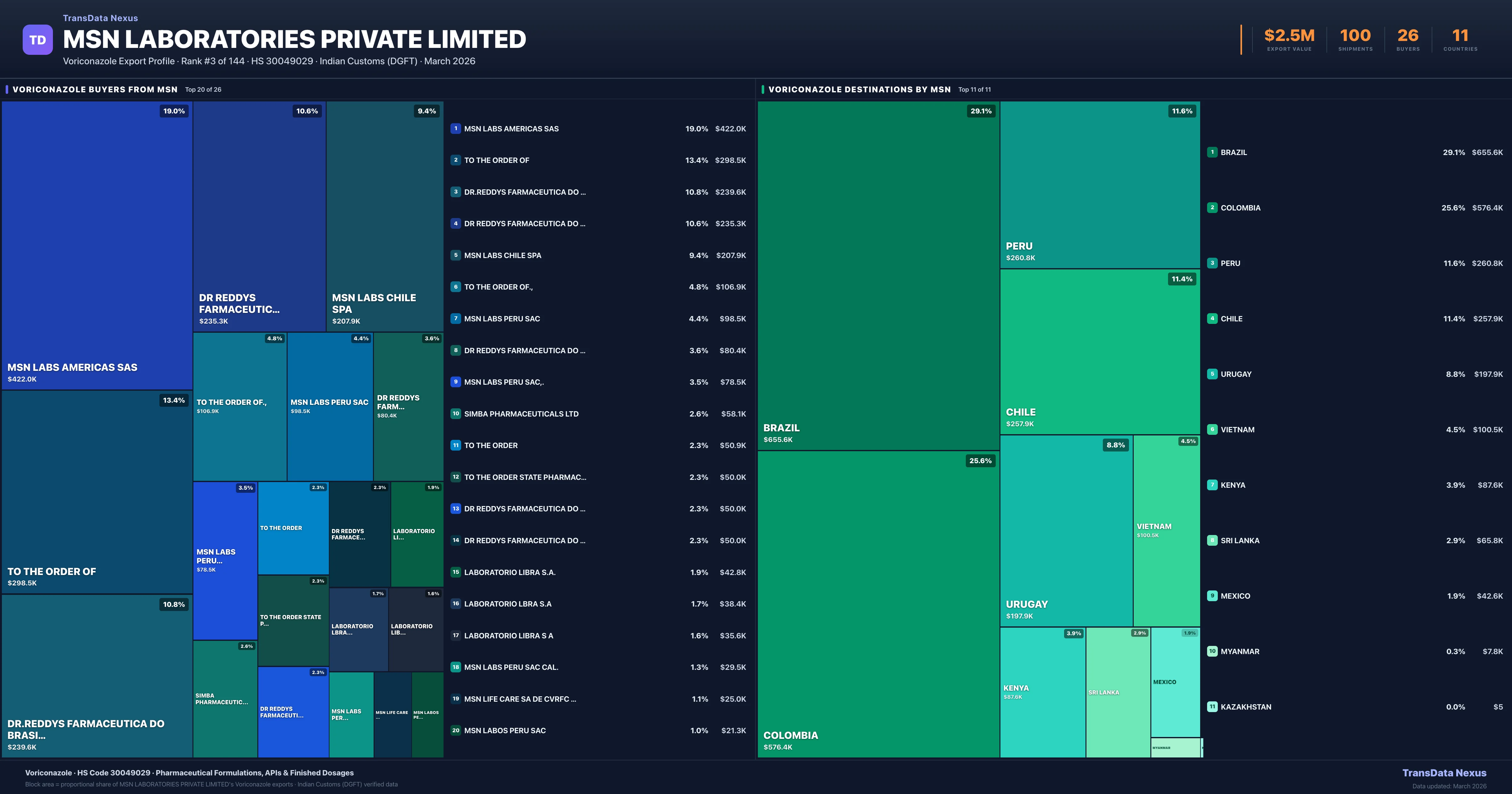 MSN Laboratories Private Limited — Voriconazole Export Profile: Buyers & Destinations