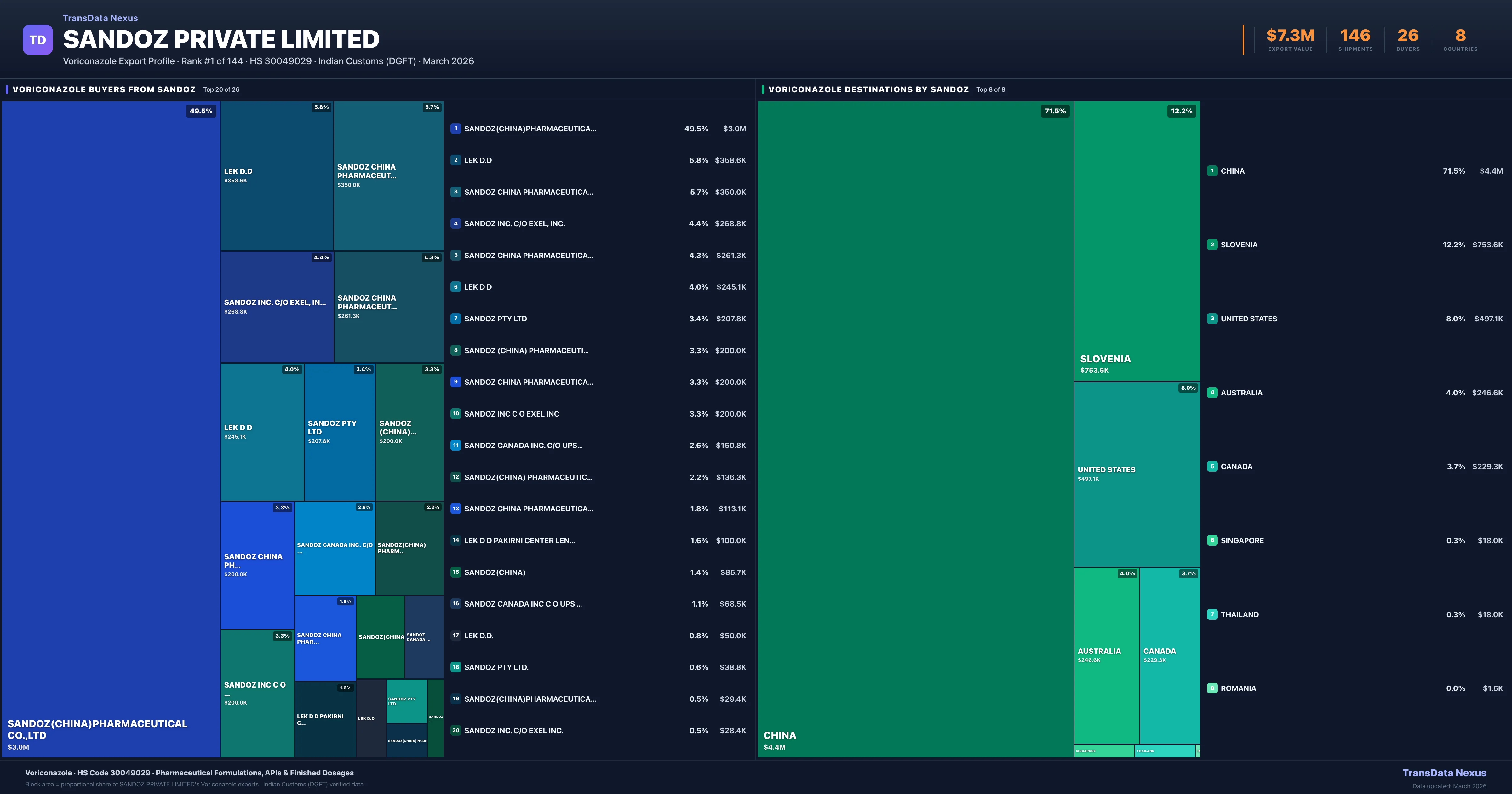 Sandoz Private Limited — Voriconazole Export Profile: Buyers & Destinations