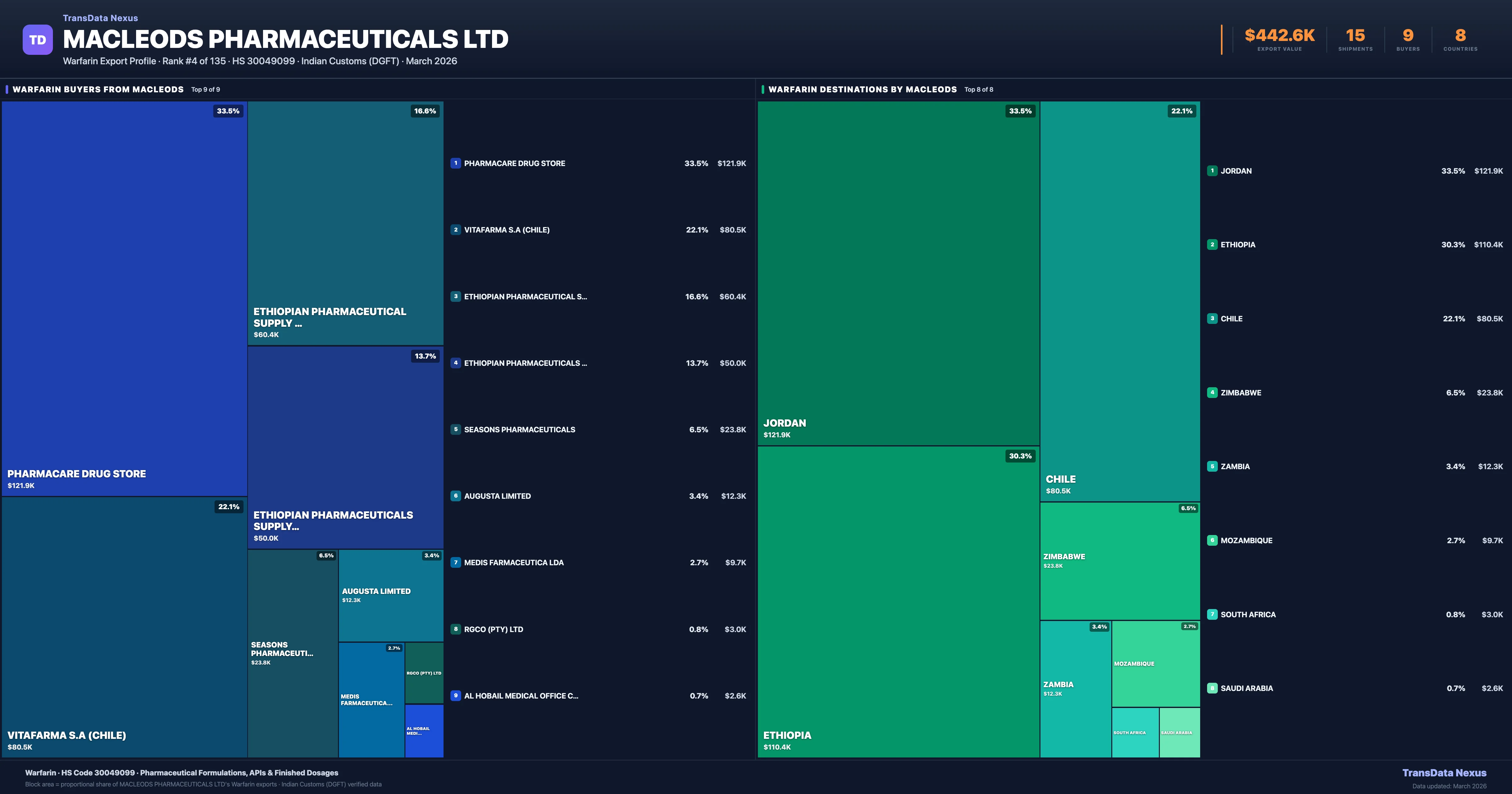 Macleods Pharmaceuticals Ltd — Warfarin Export Profile: Buyers & Destinations