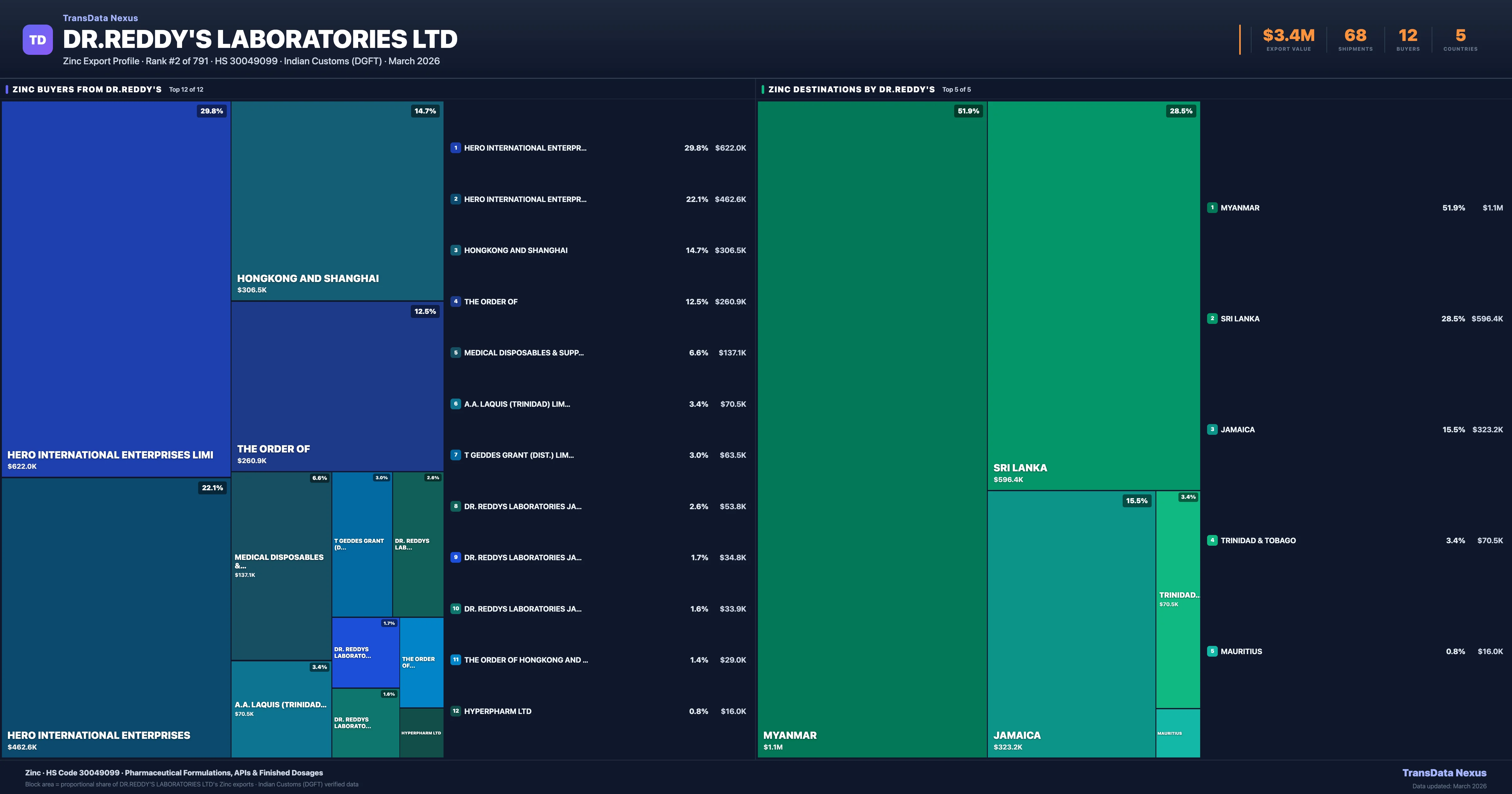 Dr.reddy's Laboratories Ltd — Zinc Export Profile: Buyers & Destinations