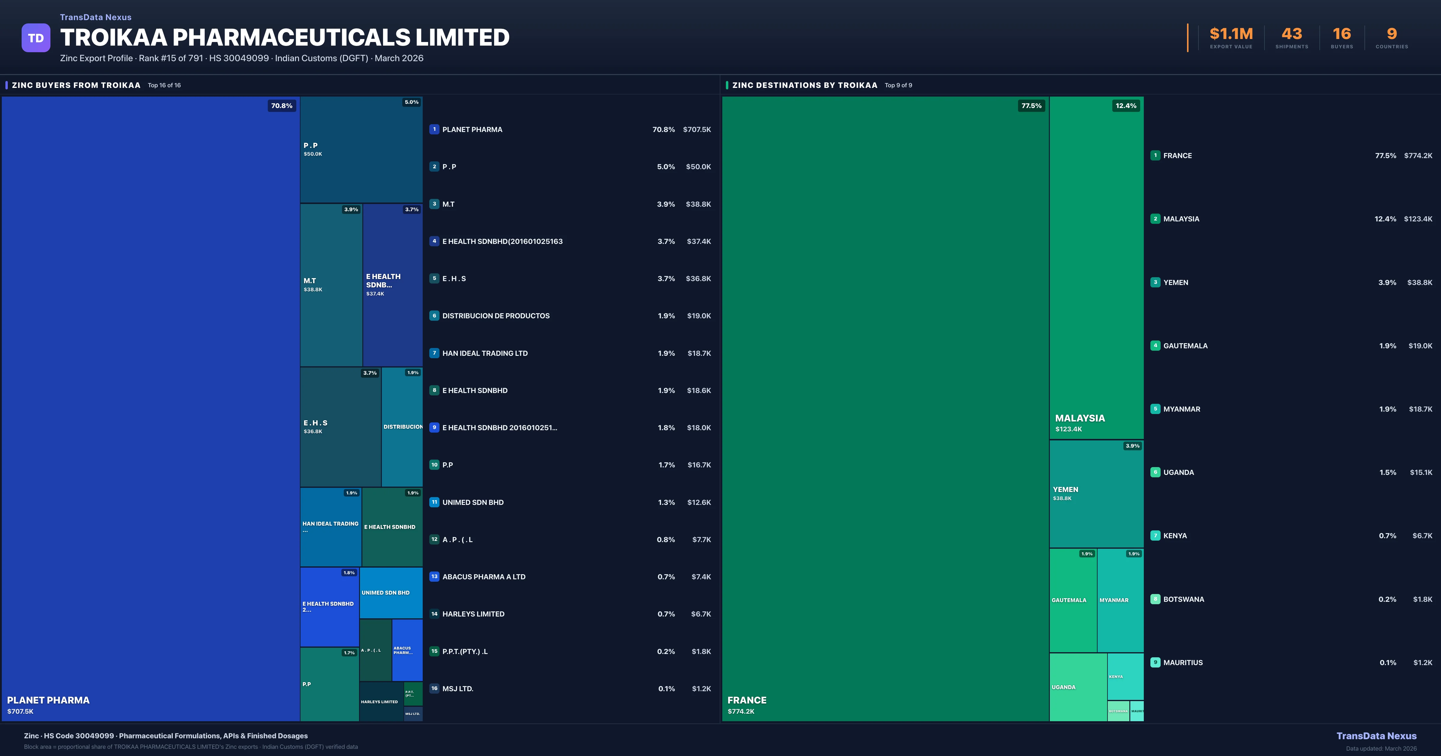 Troikaa Pharmaceuticals Limited β Zinc Export Profile: Buyers & Destinations