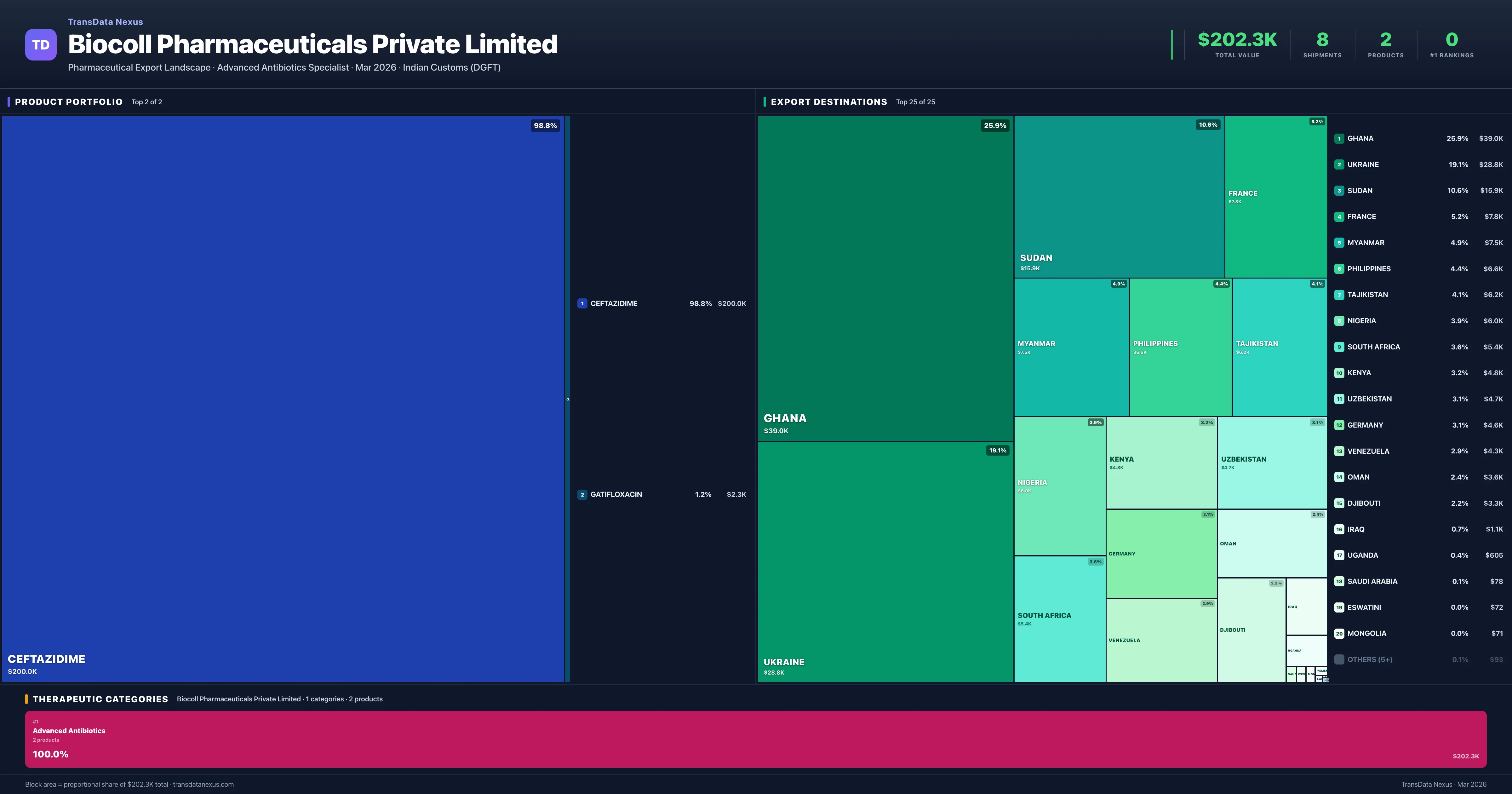 Biocoll Pharmaceuticals Private Limited โ Export Portfolio & Destination Treemap