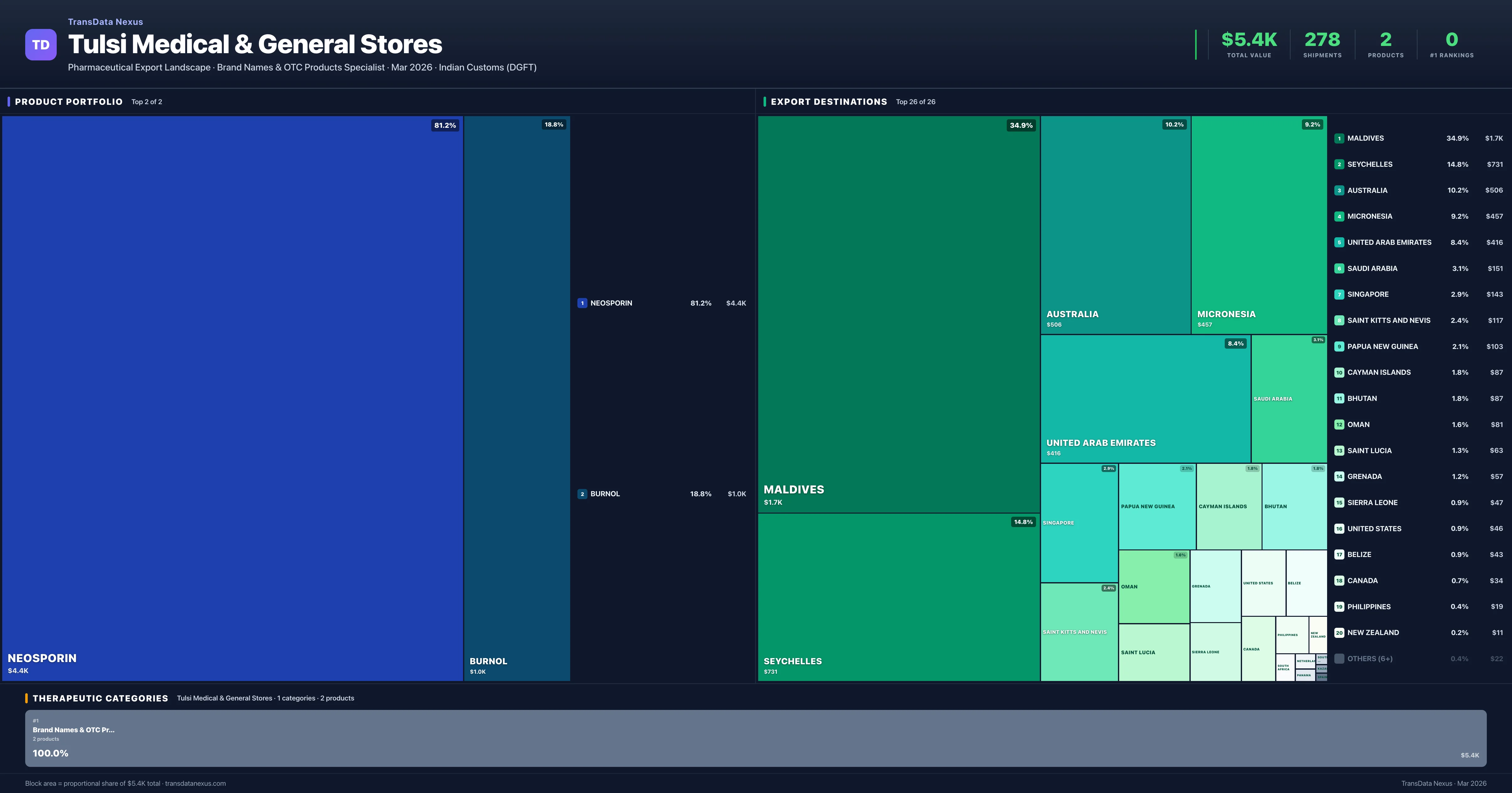 Tulsi Medical & General Stores β Export Portfolio & Destination Treemap